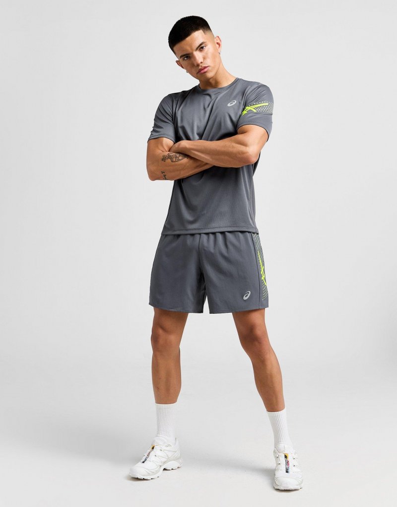 Mit den Icon Herren-Shorts von Asics bleibst du auch unterwegs cool. Diese Standard-Fit Shorts in den Farben Carrier Grey und Safety Yellow sind aus leichtem, atmungsaktivem Recycling-Polyester gefertigt und sorgen für kühlen Komfort. Sie besitzen einen elastischen Bund mit Kordelzug für eine entspannte Passform, während die Seitentaschen Platz zum Verstauen bieten. Der atmungsaktive Innenslip aus Mesh sorgt für ein angenehmes Tragegefühl, während eine versteckte Innentasche Platz für dein Smartphone bietet. Abgerundet wird das Design durch das Logo von Asics. Waschmaschinengeeignet. Unser Model ist 1,83 m groß und trägt Größe M.