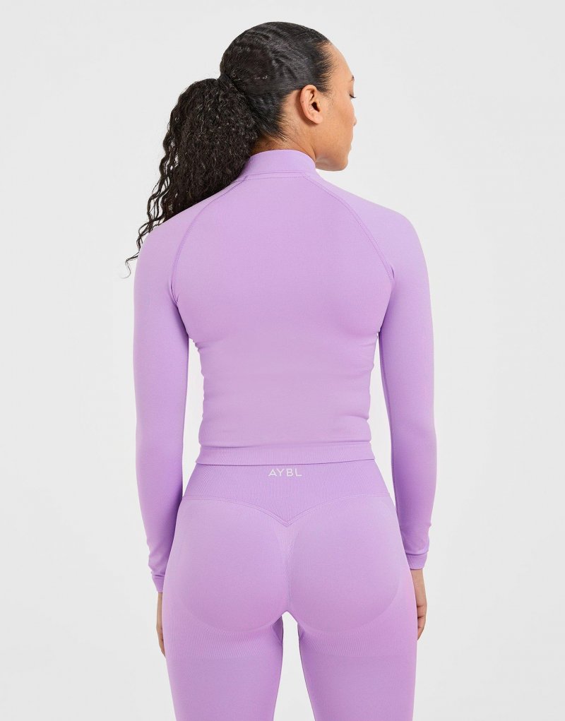 Egal, ob Gym oder Café - mit dem AYBL Adapt Seamless Full Zip Top für Damen machst du überall eine gute Figur. Dieses Slim-Fit Oberteil in der Farbe Lilac ist aus glattem, dehnbarem Stoff gefertigt, der atmungsaktiven Komfort sicherstellt. Es verfügt über einen durchgehenden Reißverschluss mit erhöhtem Kragen für einen individuellen Look, während lange, schnittige Ärmel und der schlanke, verkürzte Saum sportliche Vibes erzeugen. Abgerundet wird das Design durch den typischen AYBL-Schriftzug auf der Brust. Waschmaschinengeeignet. Unser Model trägt Größe S.