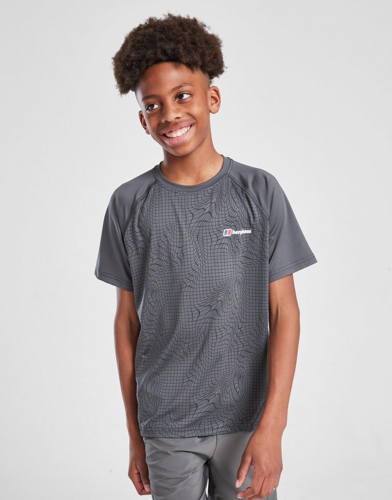 Bringen Sie mit diesem All Over Print Grid T-Shirt für Kinder von Berghaus etwas Outdoor-inspirierte Energie in Ihre Garderobe. In Grau mit durchgehendem Gittermuster ist dieses JD-exklusive T-Shirt aus glattem, leichtem Polyester für kühlen Tragekomfort gefertigt. Es hat einen Rundhalsausschnitt und kurze Ärmel für bequemes Tragen und trägt das Berghaus-Logo auf der Brust. Maschinenwaschbar.