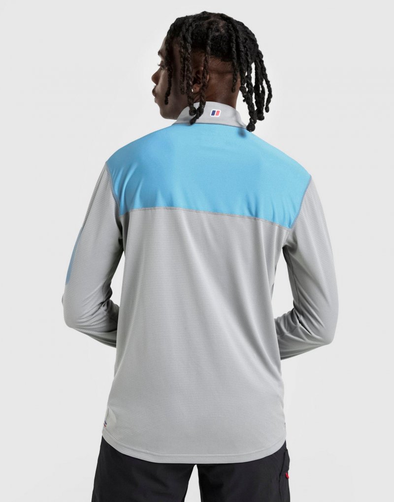 Ob Training oder Freizeit – mit diesem Herren-Explorer 1/4 Zip Top von Berghaus bringst du frischen Wind in deine Garderobe. In Grau mit blauen Akzenten ist das Top aus leichtem, atmungsaktivem Polyester gefertigt und bietet höchsten Tragekomfort. Es verfügt über einen Viertelreißverschluss und einen Stehkragen für individuellen Schutz sowie eine Ärmeltasche mit Reißverschluss für wichtige Utensilien. Abgerundet wird das Design durch das Berghaus-Branding auf Brust und Nacken. Maschinenwaschbar. | Unser Model ist 1,83 m groß, hat einen Brustumfang von 89 cm und trägt Größe M.