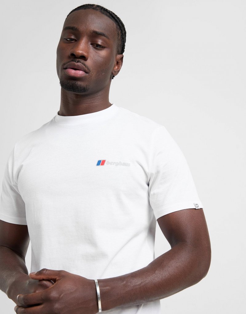 Bringen Sie mit diesem Mountain Coordinates T-Shirt für Herren von Berghaus etwas Outdoor-inspirierte Energie in Ihre Garderobe. Dieses JD-exklusive T-Shirt in Weiß ist aus weichem, leichtem Baumwollstoff für dauerhaften Tragekomfort gefertigt. Es verfügt über einen gerippten Rundhalsausschnitt und kurze Ärmel für bequemes Tragen und ist mit einer Berggrafik auf der Rückseite und dem Berghaus-Branding auf der Brust versehen. Maschinenwaschbar. | Unser Model ist 1,85 m groß, hat einen Brustumfang von 91 cm und trägt Größe M.