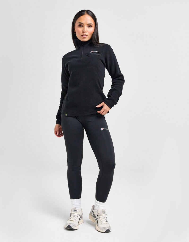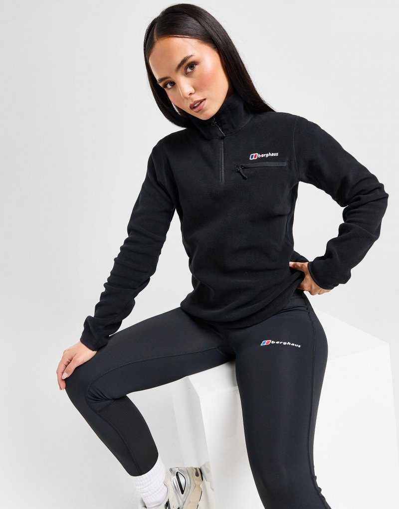 Exklusiv bei JD. Frischen Sie Ihre Kleidungsschichten mit diesem Prism 1/4 Zip Top für Damen von Berghaus auf. Dieses Top in der Farbgebung Schwarz ist aus weichem, wärmendem Polarfleece für dauerhaften Komfort gefertigt. Es verfügt über einen Viertelreißverschluss mit Stehkragen für zusätzlichen Schutz und eine dehnbare Einfassung um die Säume für ein bequemes, sicheres Tragegefühl. Es verfügt über eine Brusttasche mit Reißverschluss für schnelles Verstauen und ist mit dem charakteristischen Berghaus-Branding versehen. Maschinenwaschbar. | Unser Model ist 1,65 m groß und trägt Größe 8.
