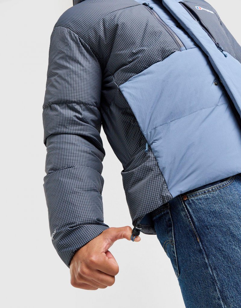 Mit der Sabber Down Herrenjacke von Berghaus macht dir die Kälte nichts mehr aus. Diese JD-exklusive Jacke in der Farbe Trooper Blue ist aus glattem, wasserabweisendem Ripstop-Gewebe mit wattierter Daunenfüllung gefertigt, um dich warm zu halten. Sie verfügt über einen durchgehenden Reißverschluss, eine Sturmklappe und eine Kapuze mit elastischen Ärmelbündchen, um die Passform zu optimieren. Zudem ist sie mit Reißverschlusstaschen versehen, damit du deine Utensilien sicher aufbewahren und mitnehmen kannst. Das klassische Logo von Berghaus befindet sich auf der Brust. Waschmaschinengeeignet. Unser Model ist 1,83 m groß, hat einen Brustumfang von 97 cm und trägt Größe M.