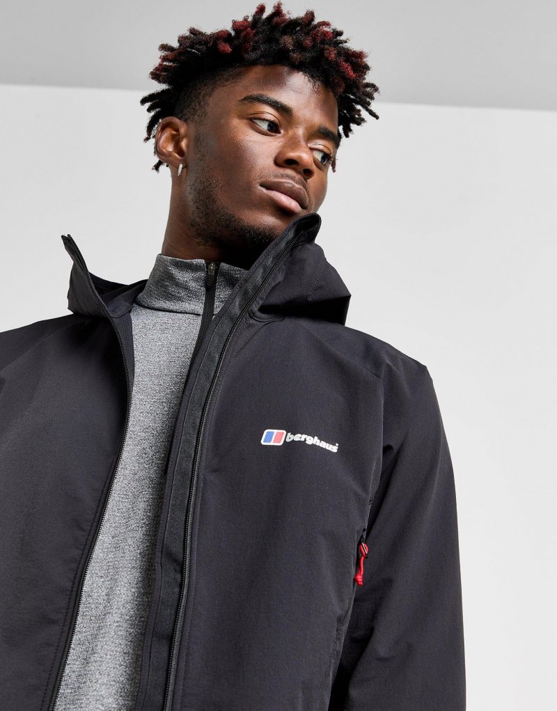 Mit dieser Skelbo Herrenjacke von Berghaus bist du bestens ausgestattet. Die Jacke ist in Schwarz gehalten und besteht aus glattem, strapazierfähigem Polyester. Sie verfügt über einen durchgehenden Reißverschluss und eine feste Kapuze, während dehnbare Bündchen für eine ideale Passform sorgen. Zudem besitzt die Jacke Reißverschlusstaschen an der Vorderseite, damit du deine Utensilien immer griffbereit hast. Auf der Brust befindet sich das klassische Logo von Berghaus. Waschmaschinengeeignet. Unser Model ist 1,80 m groß, hat einen Brustumfang von 97 cm und trägt Größe M.