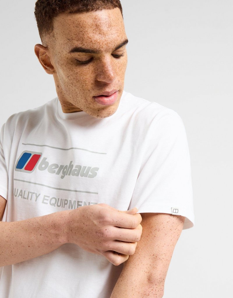 Das Berghaus Stack Logo T-Shirt für Herren darf in deiner Garderobe nicht fehlen. Dieses JD-exklusive Regular-Fit Oberteil ist aus weichem, strapazierfähigem Baumwollgewebe gefertigt und bietet maximalen Komfort im Alltag. Es ist in Weiß gehalten und verfügt über einen klassischen Rundhalsausschnitt sowie kurze Ärmel für einen zeitlosen Look. Das Berghaus-Logo auf der Brust verleiht dem Design den letzten Feinschliff. Waschmaschinengeeignet. Unser Model ist 1,83 m groß, hat einen Brustumfang von 97 cm und trägt Größe M.