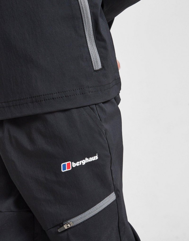 Exklusiv bei JD. Verleihen Sie ihren Outfits mit diesem Theran 1/2 Zip-Trainingsanzug für Kinder von Berghaus einen Hauch von Outdoor-inspiriertem Stil. Dieses Set in Standard-Passform in Schwarz besteht aus glattem, leichtem Gewebe für lange Haltbarkeit. Es umfasst ein langärmeliges Trainingsoberteil mit halbem Reißverschluss und fester Kapuze für den nötigen Schutz sowie eine passende Trainingshose mit elastischem Bund für ein entspanntes Tragegefühl. Es hat durchgehend elastische Besätze für einen sicheren Sitz und Reißverschlusstaschen an jedem Teil. Mit Berghaus-Branding auf Brust und Bein. Maschinenwaschbar.