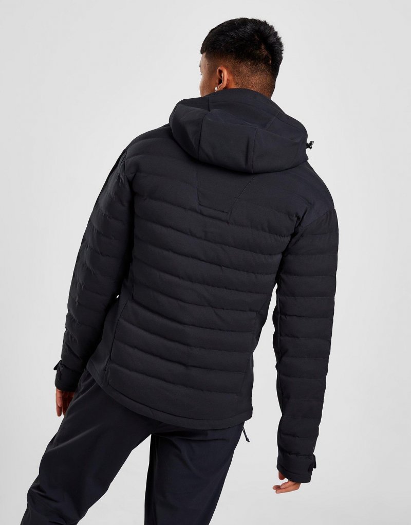 Maximiere deinen Schutz gegen die Elemente mit dieser Theran Hybridjacke für Herren von Berghaus. Diese Jacke mit normaler Passform in schwarzer Farbe besteht aus einem glatten, aber leichten Polyestergewebe und ist mit einer HydroLoft-Synthetikfüllung gefüllt, um dich warm zu halten. Sie verfügt über einen durchgehenden Reißverschluss mit einer verstellbaren Kapuze für anpassbaren Schutz und Bündchen mit Klettverschluss für eine erhöhte Passform, die die Kälte abhält. Mit Seitentaschen und Brusttaschen mit Reißverschluss zur Aufbewahrung ist es mit dem Berghaus-Branding auf der Brust versehen. Waschmaschinenfest. Unser Model ist 182cm groß, hat einen Brustumfang von 40" und trägt Größe M."