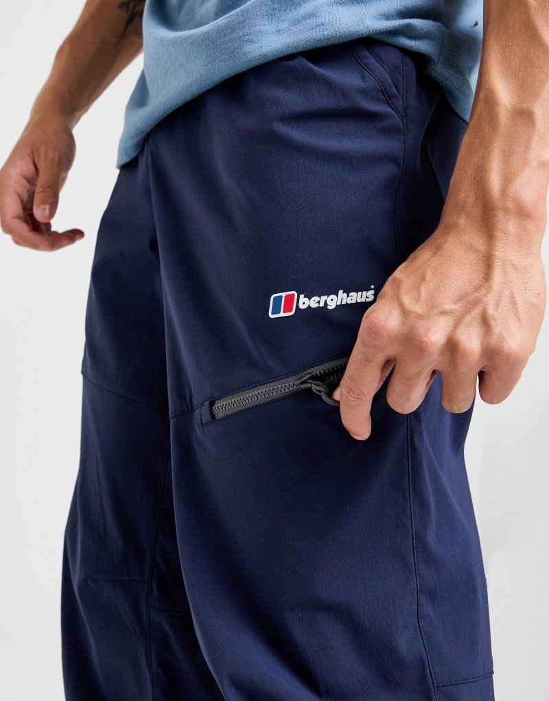 Ob Gelände oder Straße - mit dieser Berghaus Theran Herren-Trainingshose bist du bestens gestylt. In der Farbe Dusk Blue ist diese JD-exklusive Trainingshose aus glattem, strapazierfähigem Poly-Gewebe gefertigt und bietet maximalen Tragekomfort. Zudem verfügt sie über einen elastischen Bund mit Bündchen an den Beinenden, um die Form zu sichern, und Reißverschlusstaschen für eine sichere Aufbewahrung. Abgerundet wird das Design durch das Logo von Berghaus am Oberschenkel. Waschmaschinengeeignet. Unser Model ist 1,83 m groß und trägt Größe M.