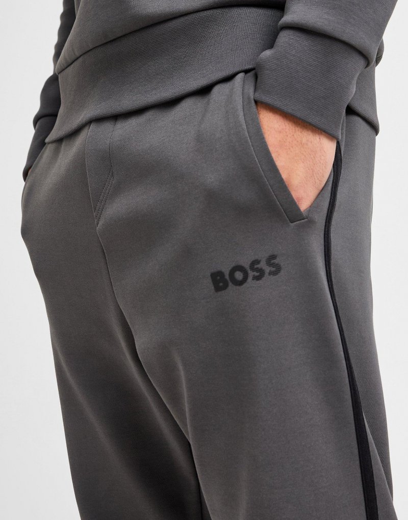Peppen Sie Ihren lässigen Look mit diesen Hadiko Split Joggers von BOSS für Herren auf. Diese Jogginghose mit Standard-Passform in der Farbe Asphalt ist aus weicher Baumwolle für erstklassigen Tragekomfort gefertigt. Sie verfügt über einen elastischen Bund mit Kordelzug für einen sicheren Sitz und gerippte Beinabschlüsse für einen formstabilen Sitz. Sie hat offene Seitentaschen zum Verstauen Ihrer wichtigsten Dinge und ist mit einem kontrastierenden schwarzen Streifen an den Seiten und dem BOSS-Branding am Oberschenkel versehen. Maschinenwaschbar. | Unser Model ist 1,85 m groß und trägt Größe M.
