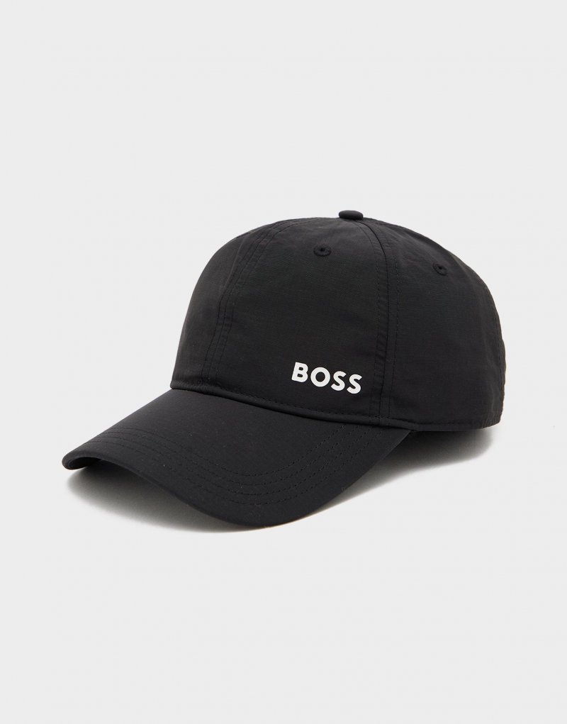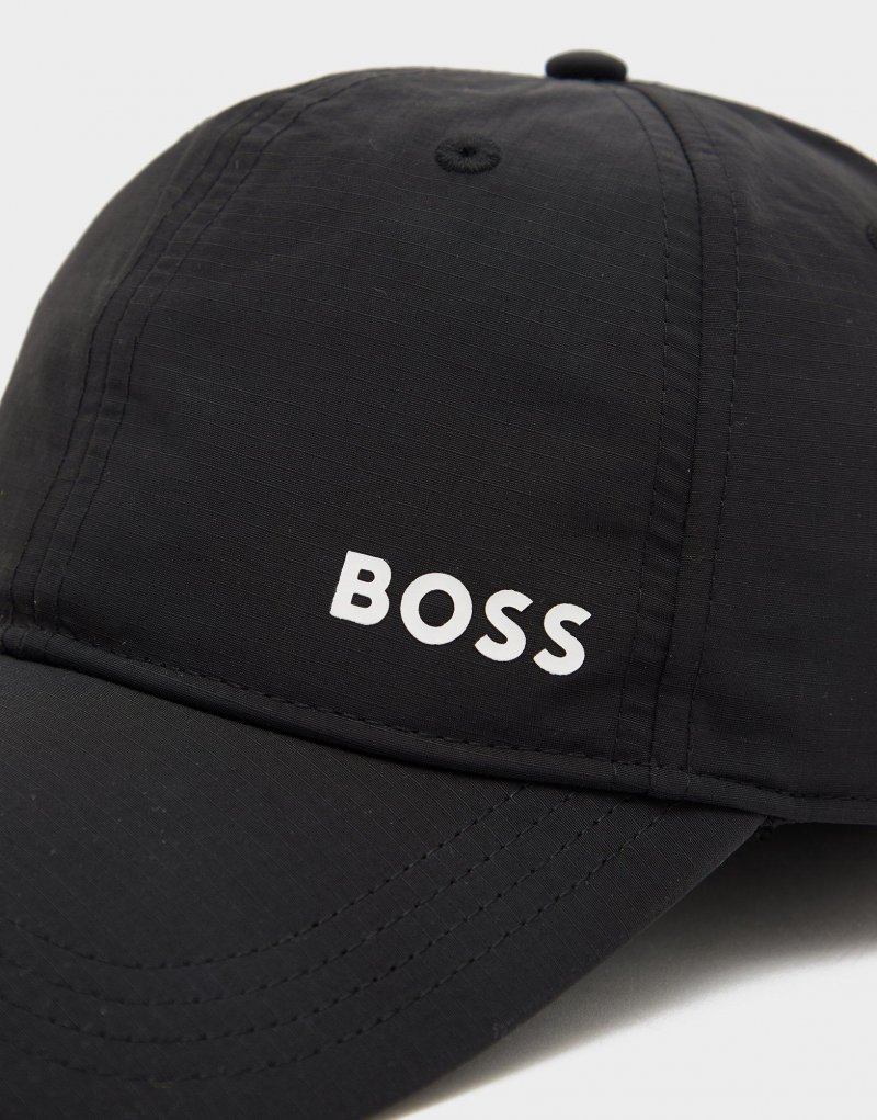 Verleihe deinem Look ein Premium-Upgrade mit der Logo Cap von BOSS. Diese schwarze Kappe besteht aus weichem, leichtem Ripstop-Gewebe und bietet erstklassigen Tragekomfort. Sie verfügt über eine klassische sechsteilige Krone, einen gebogenen Schirm und einen Riptape-Riemen auf der Rückseite für eine verstellbare Passform. Das BOSS-Logo auf der Vorderseite verleiht dem Design einen krönenden Abschluss. Für Handwäsche geeignet.