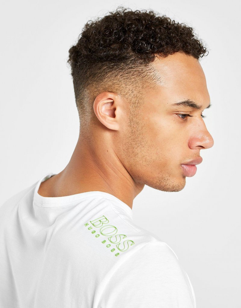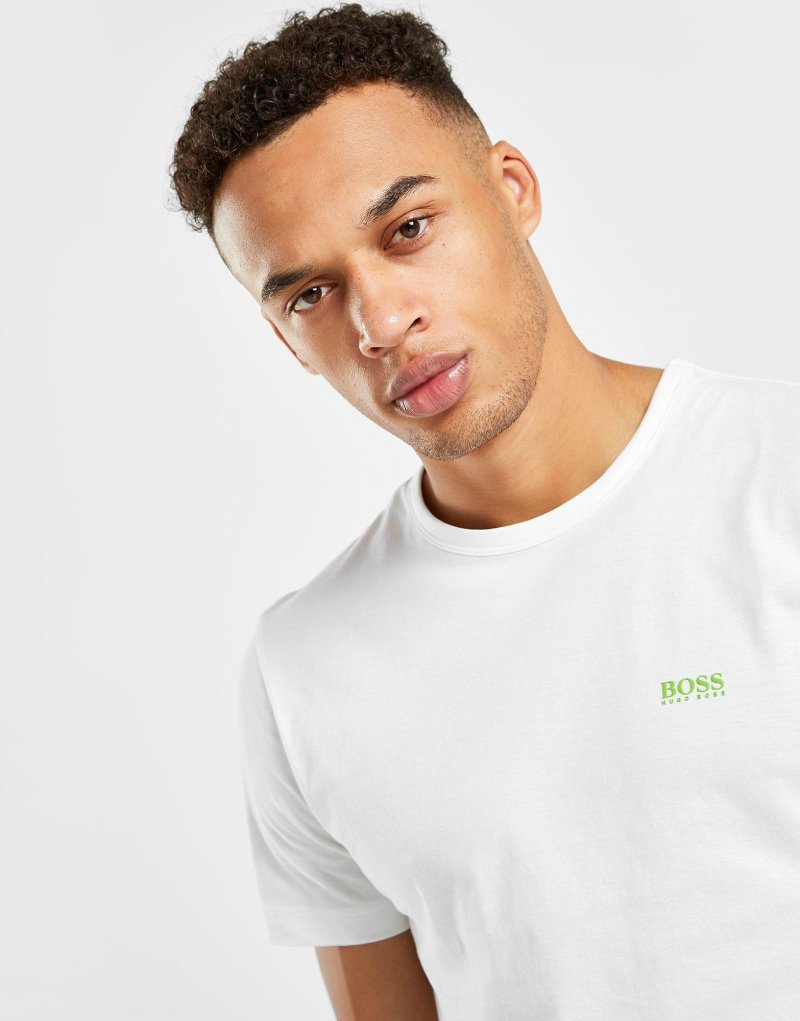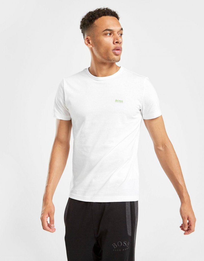 Aktualisiere deinen Style mit diesem Herren Core T-Shirt von BOSS Green. In einer frischen weißen Farbe verfügt das Basic-T-Shirt über einen klassischen Rundhalsausschnitt und kurze Ärmel für einen klassischen Schnitt. Das T-Shirt hat eine normale Passform und ist aus weicher Baumwolle gefertigt. Auf der Brust befindet sich ein dezentes BOSS-Logo. Unser Model ist 180cm groß mit einer 38" Brust und trägt eine Größe M."