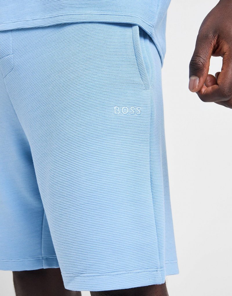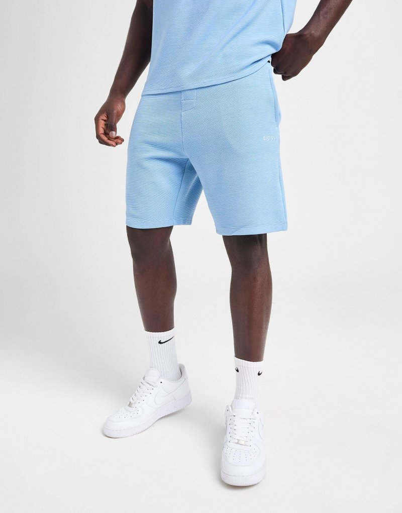 Mit diesen Ottoman Ribbed Shorts für Herren von BOSS zeigen Sie sich stilvoll und stilvoll. Die Shorts in Blau bestehen aus weichem, elastischem Jersey mit gerippter Struktur für langanhaltenden Tragekomfort. Sie verfügen über einen elastischen Bund mit Kordelzug zur individuellen Anpassung und Seitentaschen für Stauraum. Das aufgestickte BOSS-Logo auf dem Oberschenkel rundet das Design ab. Maschinenwaschbar. | Unser Model ist 1,85 m groß und trägt Größe M.