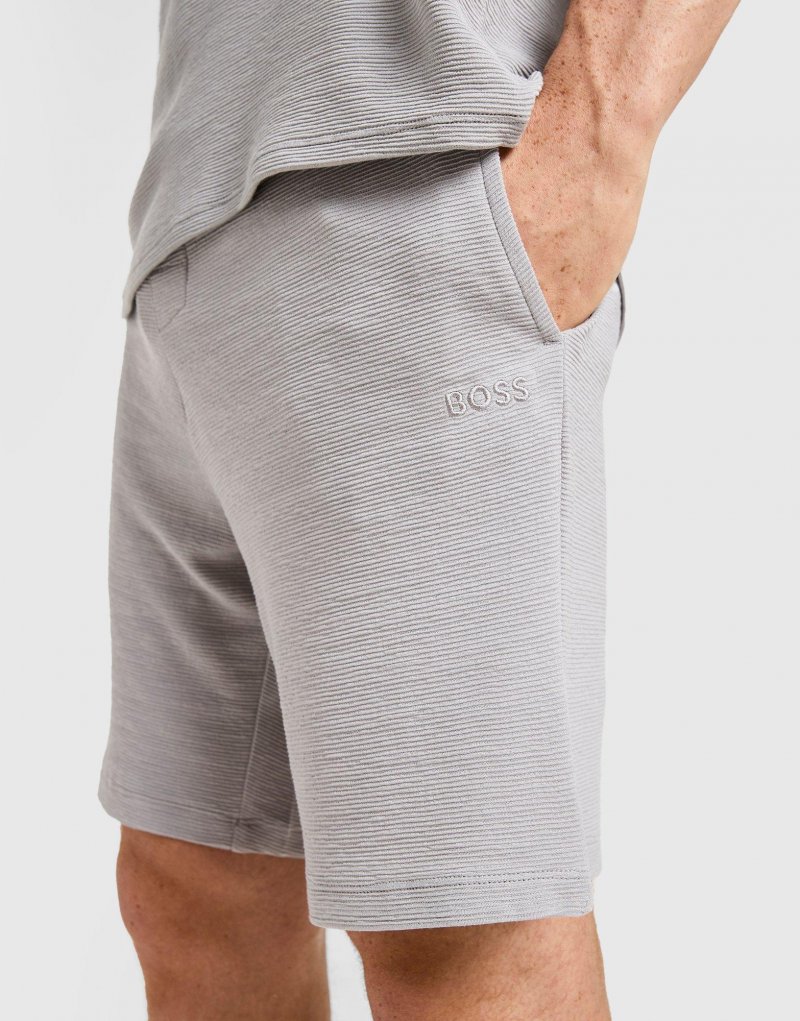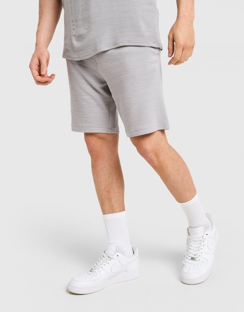 Verleihen Sie Ihrer Garderobe mit diesen Ottoman Ribbed Shorts von BOSS einen Hauch von Premium-Style. Die Shorts in Grau bestehen aus weichem, elastischem Jersey mit gerippter Struktur für langanhaltenden Tragekomfort. Sie haben einen elastischen Bund mit Kordelzug zur individuellen Anpassung und Seitentaschen zur Aufbewahrung. Das gestickte BOSS Logo auf dem Oberschenkel rundet das Design ab. Maschinenwaschbar. | Unser Model ist 1,83 m groß und trägt Größe M.