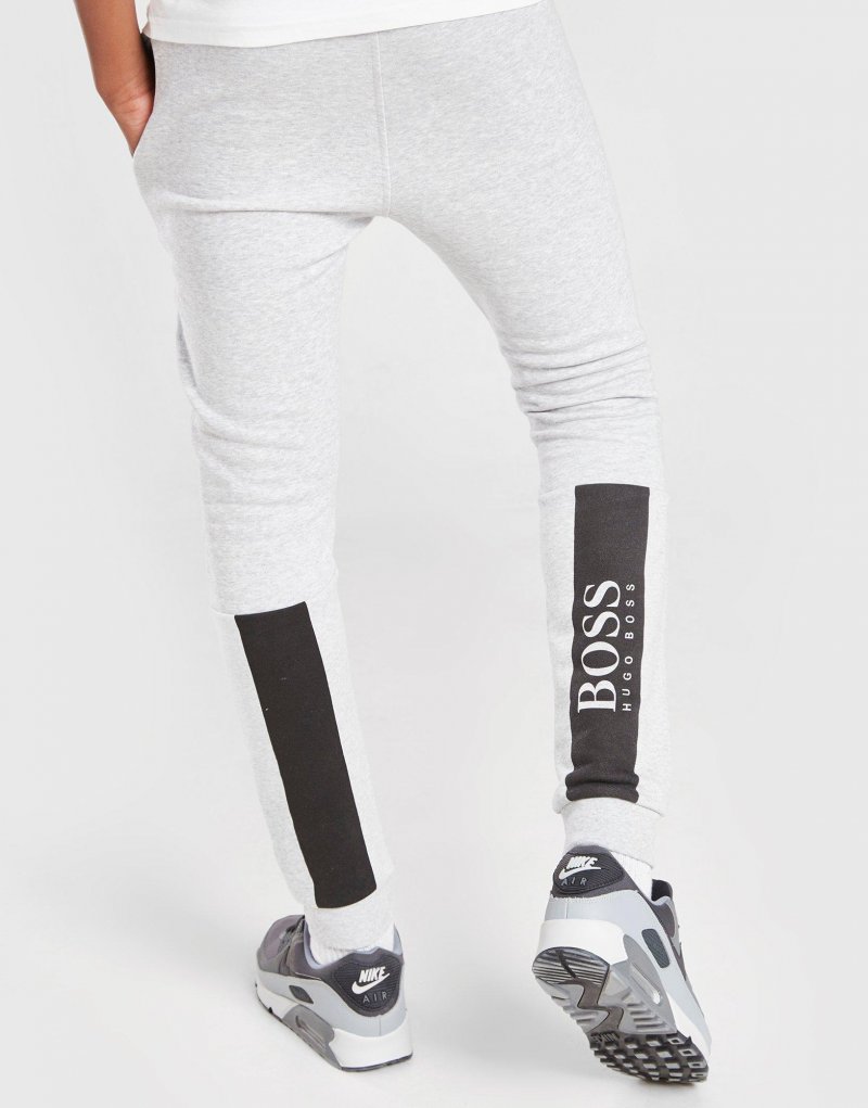 Bring Premium-Style in deine Garerobe mit der BOSS Panel Jogginghose für Kinder. Diese Slim-Fit Hose in Grau ist aus hochwertigem Baumwoll-Fleece gefertigt und bietet absoluten Komfort. Sie besitzt konisch zulaufende Hosenbeine und einen elastischen Bund für eine sichere Passform. Die Paneele an den Unterschenkeln sorgen für einen auffälligen Kontrast, während die Seitentaschen eine einfache Aufbewahrung ermöglichen. Das klassische BOSS-Logo am Oberschenkel setzt dem Design noch die Krone auf. Waschmaschinengeeignet.