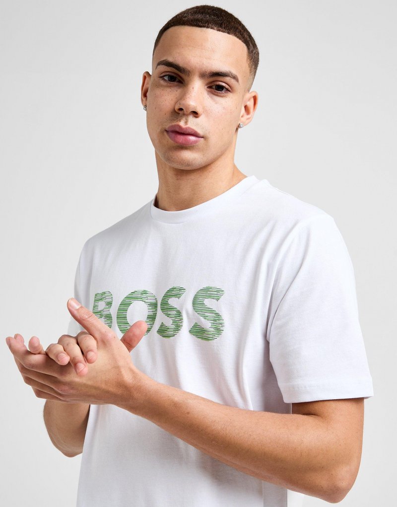 Frischen Sie Ihre Basics mit einem JD-exklusiven Look auf: Dieses Herren-T-Shirt mit Space-Logo von BOSS. Dieses T-Shirt in Weiß hat einen gerippten Rundhalsausschnitt und kurze Ärmel für einen klassischen Schnitt. Es besteht aus ultraweichem Baumwolljersey für ein erstklassiges Tragegefühl und ist mit einem kontrastierenden BOSS-Schriftzug auf der Brust versehen. Maschinenwaschbar. | Unser Model ist 1,85 m groß, hat einen Brustumfang von 96,5 cm und trägt Größe M.
