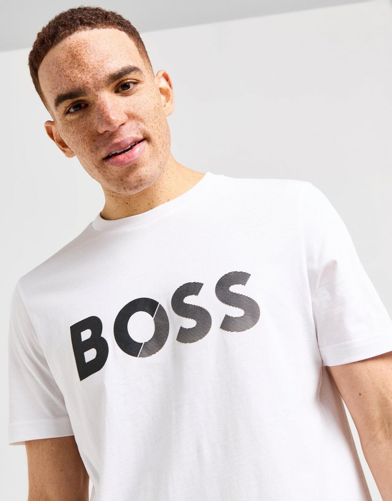 Sorge für einen Statement-Look in deinem Alltag mit dem BOSS Split T-Shirt für Herren. Dieses Standard-Fit Oberteil in Weiß verfügt über einen gerippten Rundhalsausschnitt und kurze Ärmel für einen zeitlosen Look. Es besteht aus weichem Baumwollgewebe und ist mit einem geteilten, übergroßen BOSS-Schriftzug auf der Brust versehen. Waschmaschinengeeignet. Unser Model ist 1,83 m groß, hat einen Brustumfang von 97 cm und trägt Größe M.