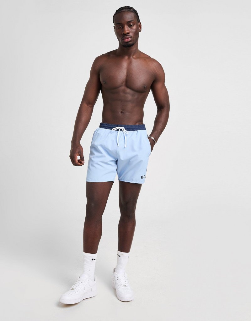 Gehen Sie mit diesen Starfish-Badeshorts für Herren von BOSS in erstklassigem Stil an den Pool. Diese JD-exklusiven Shorts in der Farbgebung Sky sind aus wasserabweisendem recyceltem Polyester gefertigt und bieten dauerhaften Komfort. Sie verfügen über einen elastischen Bund mit Kordelzug zur Anpassung der Passform, ein Netzfutter, um die Sachen kühl zu halten, und Seitentaschen zur Aufbewahrung. Abgerundet durch das charakteristische BOSS-Branding am Oberschenkel. Maschinenwaschbar. | Unser Model ist 1,85 m groß und trägt Größe M.