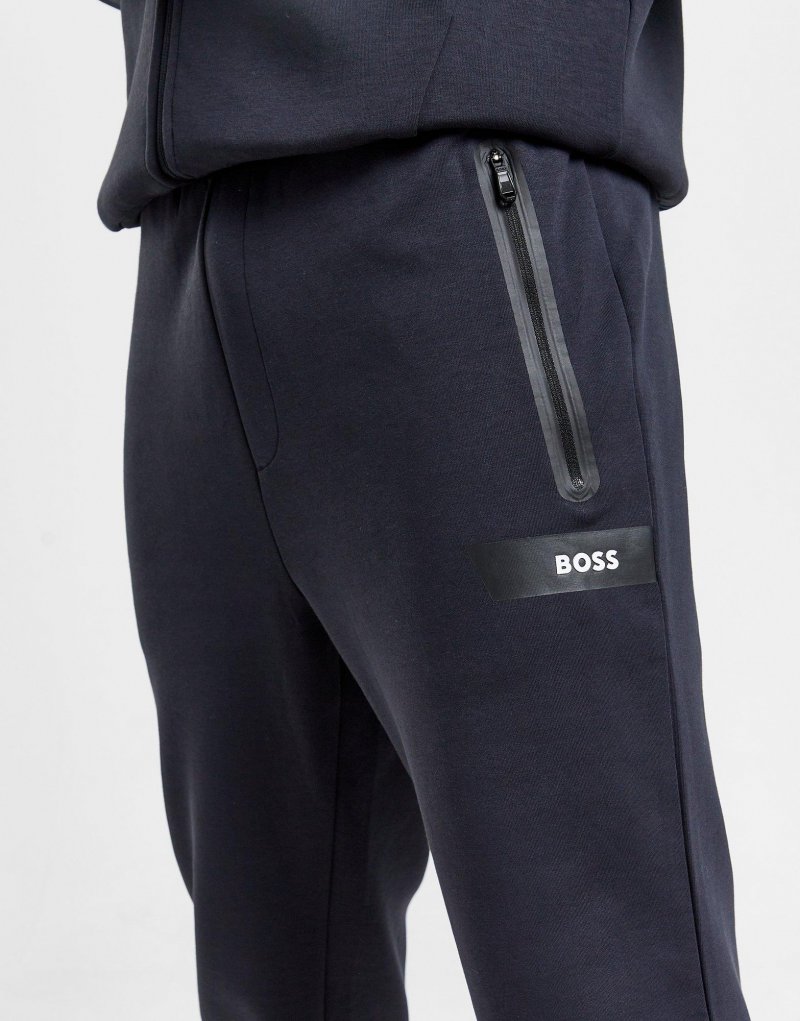 Entspannen Sie sich in Premium-Stil mit diesen gestreiften Hadiko-Trainingshosen für Herren von BOSS. Diese JD-exklusiven Hosen mit Standard-Passform in Marineblau und Schwarz sind aus weichem Fleece-Stoff für bequemen Tragekomfort gefertigt. Sie verfügen über einen elastischen Bund mit Kordelzug für eine verstellbare Passform, gerippte Bündchen für Formstabilität und Seitentaschen mit Reißverschluss für sichere Aufbewahrung. Abgerundet mit klassischem BOSS-Branding. Maschinenwaschbar | Unser Model ist 1,85 m groß und trägt Größe M.