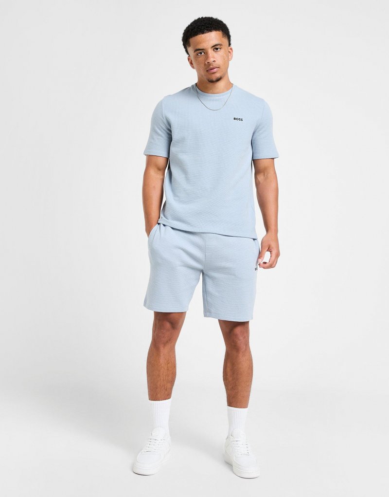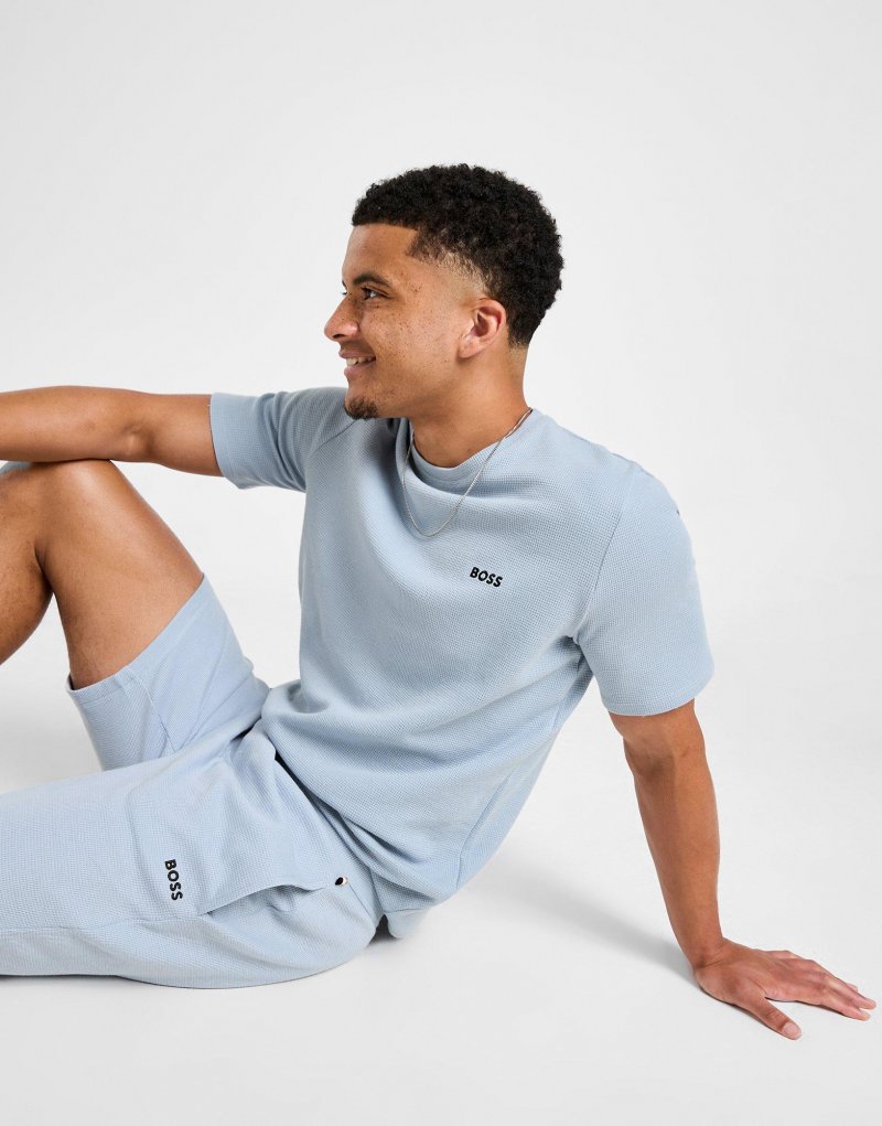 Mit diesem Herren-Waffel-T-Shirt von BOSS zeigst du dich in Premiumqualität. Das Regular-Fit-T-Shirt in Hellblau besteht aus einem waffelstrukturierten Baumwoll-Polyester-Mix. Der Rundhalsausschnitt und die kurzen Ärmel sorgen für ganztägigen Tragekomfort und verleihen Struktur. Das aufgestickte BOSS-Logo auf der Brust rundet das Design ab. Maschinenwaschbar. | Unser Model trägt Größe M.