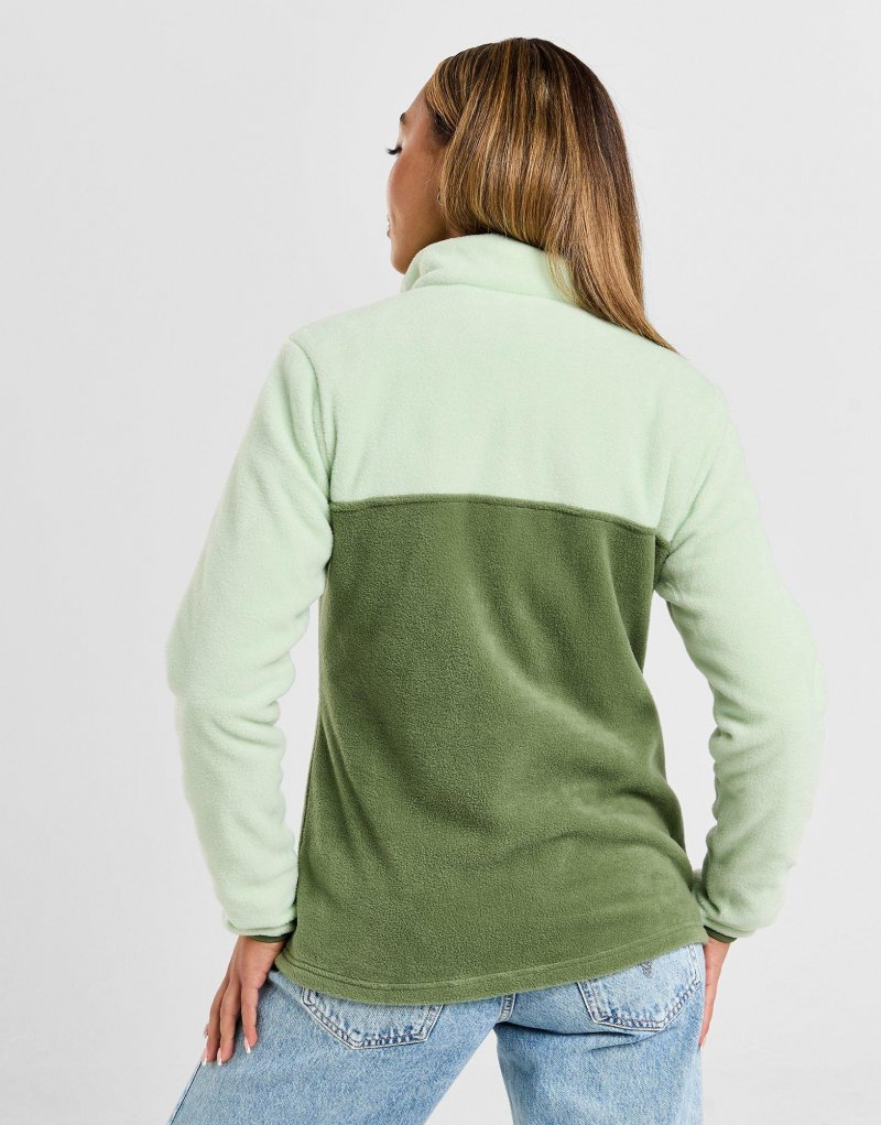 Wenn das Wetter mal wieder was kühler ist, solltest du auf diesen Columbia Benton Springs Pullover für Damen nicht verzichten. Dieses Top in den Farben Canteen und Sage Leaf besteht aus einem Polyester-MTR-Filament-Fleece, das die Wärme im Körper hält. Es hat eine Druckknopfleiste mit vier Knöpfen und einen erhöhten Kragen für eine individuelle Abdeckung, während Bündchen an den Ärmeln für anpassbaren Komfort sorgen. Abgerundet wird das Oberteil durch das Columbia-Logo auf der Brust. Waschmaschinengeeignet. Unser Model ist 1,73 m groß und trägt Größe S.