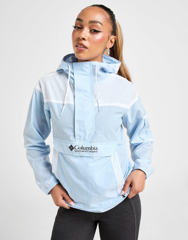 Inspiriert von den Archiven ist diese leichte Challenger-Jacke für Damen von Columbia Ihr absoluter Lieblingsmantel. Im blau-weißen Farbblock-Design ist dieser JD-exklusive Pullover aus leichtem Gewebe gefertigt und mit wasserabweisender Omni-Shield-Technologie ausgestattet, die Sie frisch hält. Er verfügt über einen halben Reißverschluss, elastische Abschlüsse und eine Kapuze mit Kordelzug für individuellen Schutz. Er lässt sich in der eigenen Tasche verstauen und ist mit einer Ärmeltasche mit Reißverschluss und einer Kängurutasche mit Columbia-Logo ausgestattet. Maschinenwaschbar. | Unser Model ist 1,73 m groß und trägt Größe S.