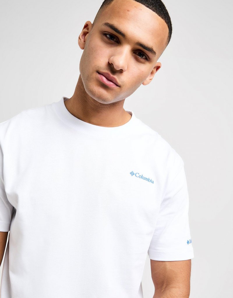 Ziehen Sie für einfachen, alltäglichen Komfort dieses Jed T-Shirt für Herren von Columbia an. Dieses T-Shirt mit normaler Passform in Weiß ist aus weichem Baumwollstoff gefertigt. Es verfügt über einen gerippten Rundhalsausschnitt und kurze Ärmel für einen klassischen Look. Mit einem kontrastierenden Grafikdruck auf der Rückseite ist dieses T-Shirt maschinenwaschbar. | Unser Model ist 1,85 m groß, hat einen Brustumfang von 99 cm und trägt Größe M.