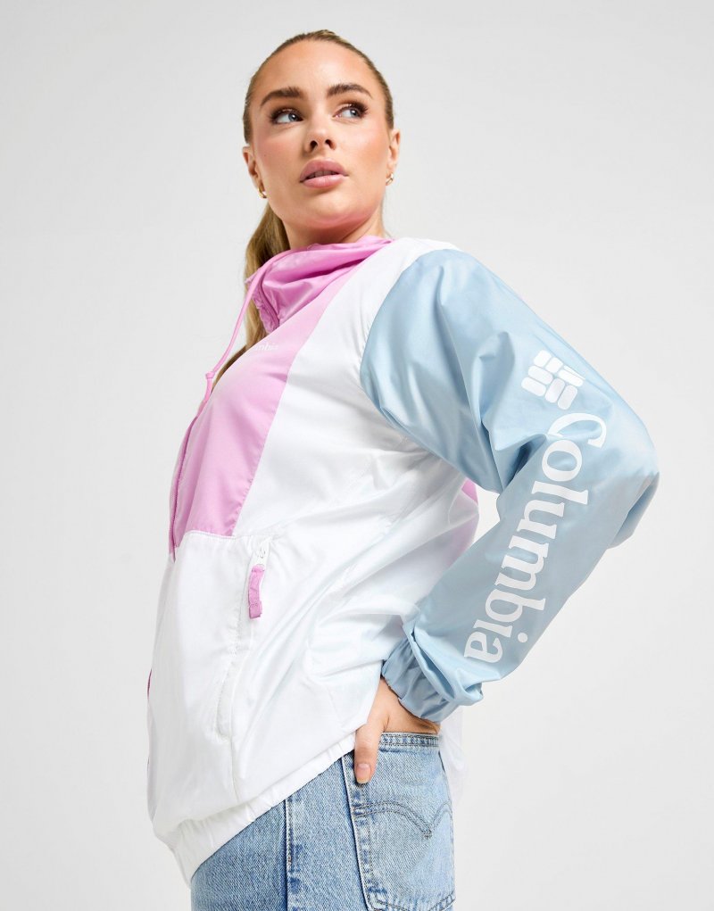 Retro-Design für die moderne Wanderszene. Mit der Lily Basin Jacke für Damen von Columbia, exklusiv bei JD, kannst du dich warm anziehen. Im Farbblock-Look in Pink, Weiß und Blau verfügt dieser Mantel über einen durchgehenden Reißverschluss, eine Kapuze mit Kordelzug, einen Kinnschutz und elastische Besätze für individuellen Schutz. Er besteht aus leichtem Gewebe und bietet Omni-Shield-Schutz bei Regen. Reißverschlusstaschen und das charakteristische Columbia-Logo runden das Design ab. Maschinenwaschbar. | Unser Model ist 1,73 m groß und trägt Größe S.