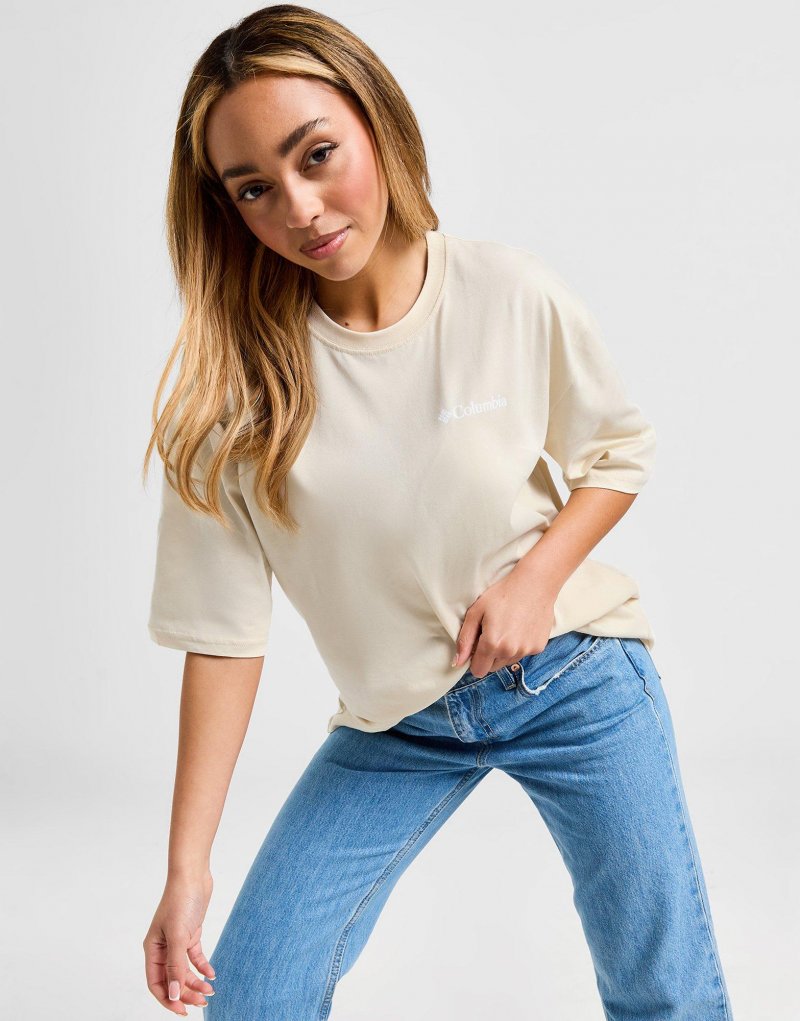 Mit dem Columbia Mountain T-Shirt für Damen bringst du einen Hauch von Outdoor in deinen Alltags-Look. Dieses JD-exklusive T-Shirt in der Farbe Stone besteht aus weichem Baumwollgewebe und bietet Komfort für jeden Tag._Es hat kurze Ärmel, einen gerippten Rundhalsausschnitt und überschnittene Schultern für einen entspannten Tragekomfort. Der Columbia Schriftzug auf der Brust und das Bergmotiv auf dem Rücken machen das Shirt zum Hingucker.