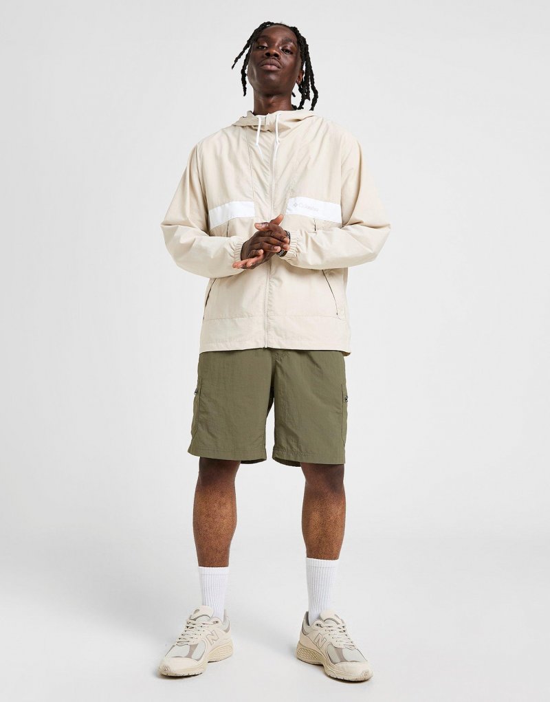 Die Mountaindale Cargo Shorts für Herren von Columbia sind wie geschaffen für die Natur. Entdecken Sie die Natur in Stone Green. Sie bestehen aus wasser- und schmutzabweisendem Omni-Shield-Nylongewebe mit schnelltrocknender Behandlung für kühlen Tragekomfort. Der elastische Bund mit integriertem Gürtel ermöglicht eine individuelle Passform, und die Cargotaschen mit Reißverschluss bieten Platz für alles Wichtige. Abgerundet wird das Design durch das charakteristische Columbia-Branding. | Unser Model ist 1,83 m groß und trägt Größe M.