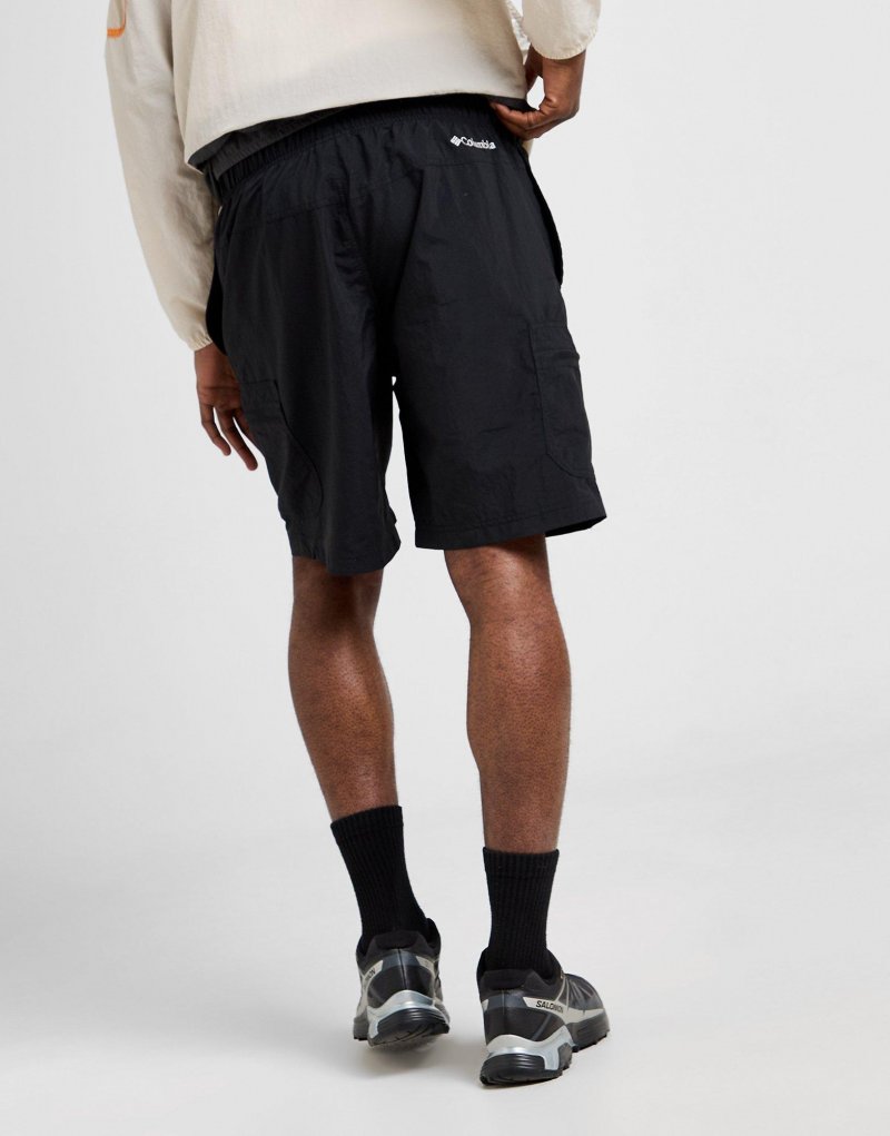 Egal, welches Abenteuer Sie erleben, bei diesen Mountaindale Cargo Shorts für Herren von Columbia dreht sich alles um Komfort. Diese Shorts in Schwarz mit normaler Passform sind aus strukturiertem Popeline-Stoff gefertigt, der schnell trocknet und mit Omni-Shield Advanced Repellency Wasser und Flecken abhält. Sie verfügen über einen elastischen Bund mit integriertem Gürtel sowie Eingriff- und Reißverschlusstaschen. Abgerundet durch das charakteristische Columbia-Schriftzeichen. Maschinenwaschbar. | Unser Model ist 1,83 m groß und trägt Größe M.