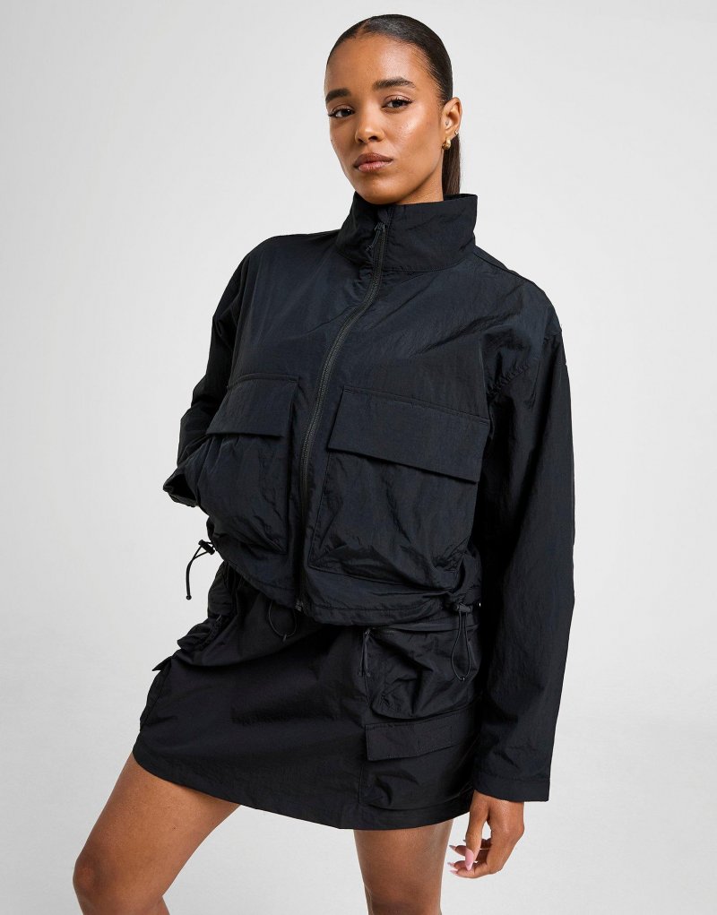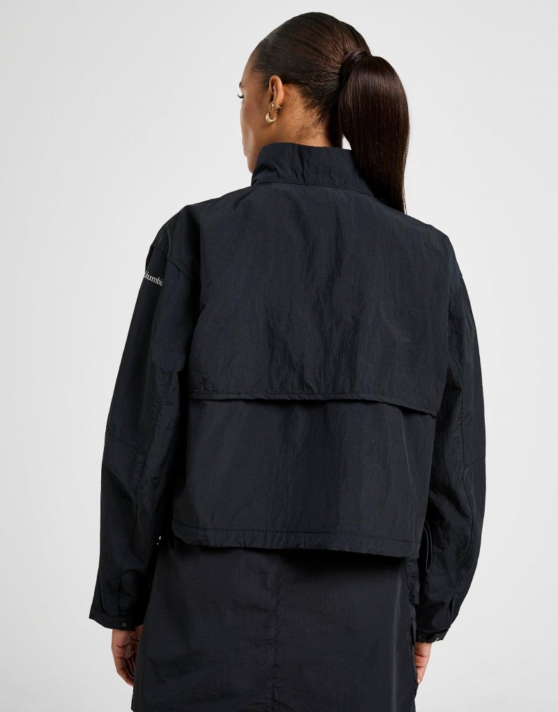 Verschönern Sie Ihre lässige Kleidung mit diesem Paracutie Full Zip Cropped Hoodie für Damen von Columbia. Die locker geschnittene Jacke in Schwarz besteht aus glattem, leichtem Polyestergewebe für langanhaltenden Tragekomfort. Der durchgehende Reißverschluss mit Stehkragen sorgt für zusätzlichen Schutz und der verstellbare Saum mit Gummizug sorgt für einen individuellen Look. Die Taschen bieten schnellen Stauraum und der charakteristische Columbia-Schriftzug auf der Brust runden das Design ab. Maschinenwaschbar. | Unser Model ist 1,70 m groß und trägt Größe S.