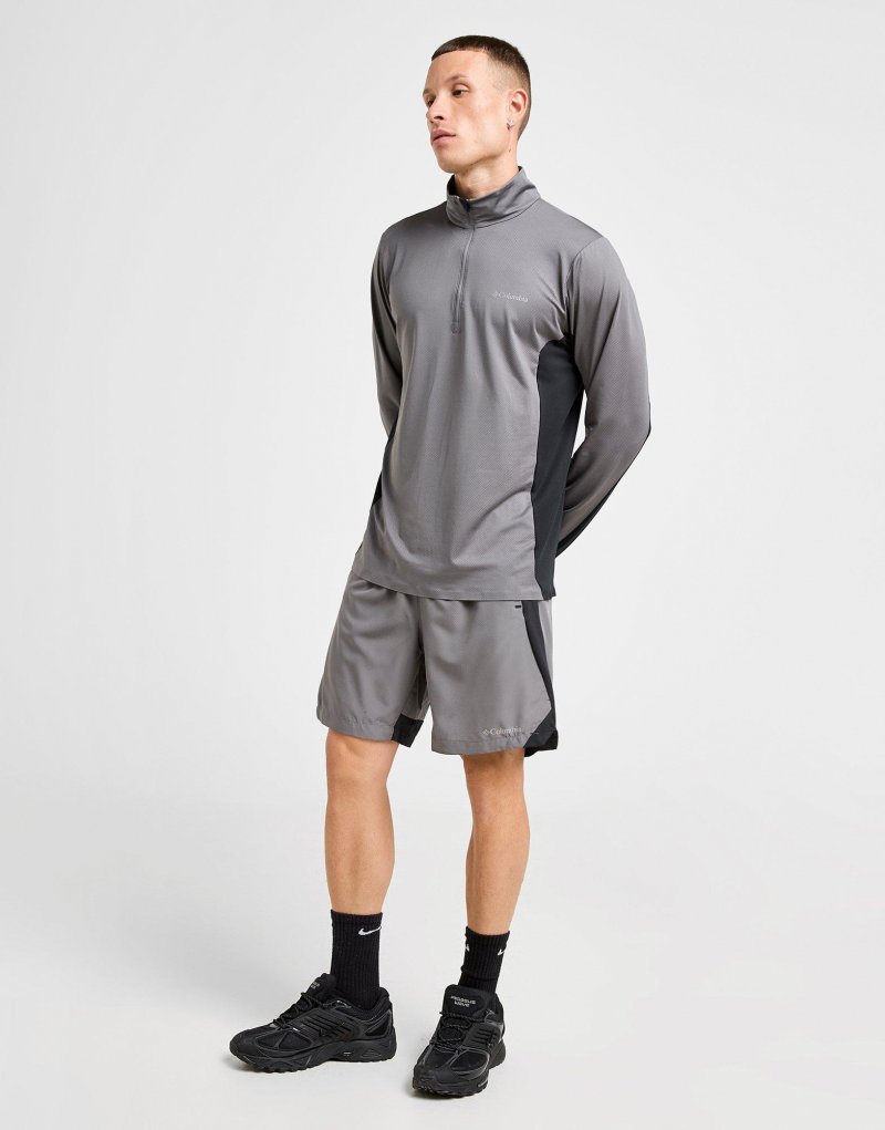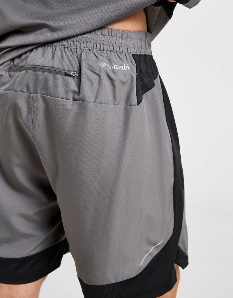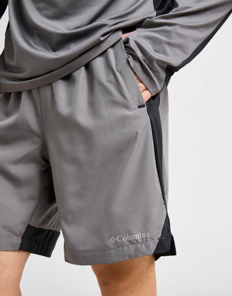 Werten Sie Ihre Trainingsrotation mit diesen Three Pitch Shorts für Herren von Columbia auf. Diese Shorts in Grau sind aus glattem, leichtem Polyestergewebe für höchsten Tragekomfort gefertigt. Sie verfügen über einen elastischen Bund mit Kordelzug, sodass Sie die Passform anpassen können, und die schweißableitende Omni-Wick-Technologie hält Sie trocken, während Sie ins Schwitzen geraten. Die Seitentaschen und die Gesäßtasche mit Reißverschluss bieten Platz zum Verstauen wichtiger Dinge, während reflektierende Details für Sichtbarkeit bei schlechten Lichtverhältnissen sorgen. Abgerundet durch das Columbia-Branding auf dem linken Oberschenkel. Maschinenwaschbar. | Unser Model ist 1,83 m groß und trägt Größe M.