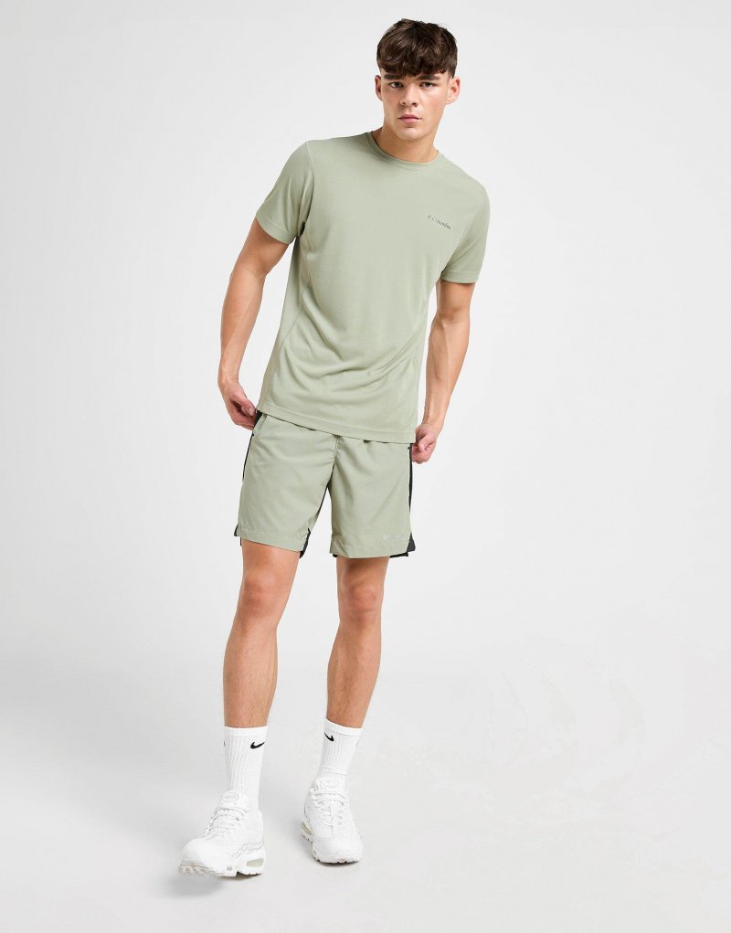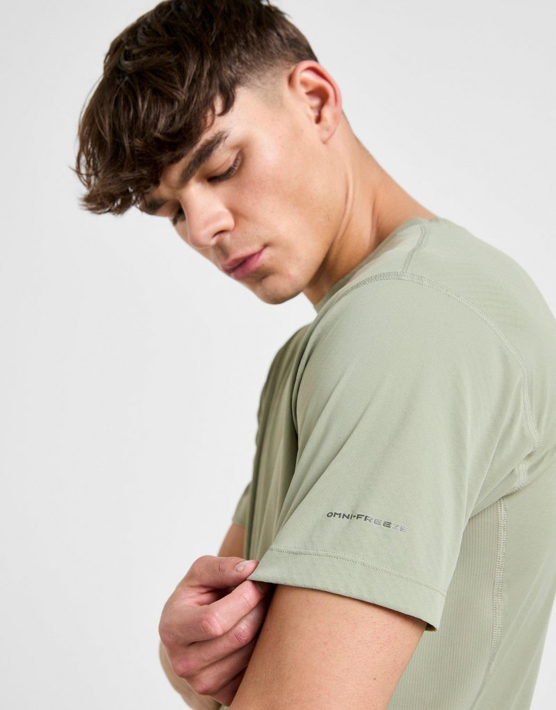 Erleben Sie Outdoor-Abenteuer mit diesem Zero Rules T-Shirt für Herren von Columbia. Das locker sitzende T-Shirt in der Farbgebung Safari ist aus glattem, leichtem Polyester gefertigt und bietet so dauerhaften Tragekomfort. Rundhalsausschnitt und kurze Ärmel sorgen für ein angenehmes Tragegefühl. Das schweißaktivierte Omni-Freeze Zero Kühlsystem und Omni-Wick Seiteneinsätze halten Sie trocken. Das charakteristische Columbia-Logo auf der Brust rundet das T-Shirt ab. Maschinenwaschbar. | Unser Model ist 1,88 m groß, hat einen Brustumfang von 94 cm und trägt Größe M.