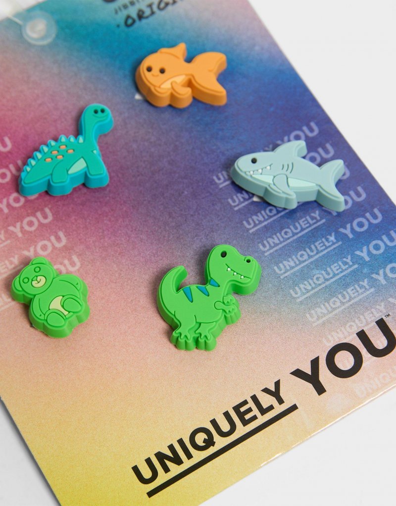 Veredeln Sie Ihre Crocs mit diesem 5er-Pack Cartoon-Tier-Jibbitz-Anhänger von Crocs. Die Anhänger sind in verschiedenen Farbvarianten erhältlich und bestehen aus glattem, strapazierfähigem Kunststoff für eine lange Lebensdauer. Sie lassen sich einfach an den Lüftungsöffnungen befestigen und sind mit dem klassischen Crocs-Logo versehen.