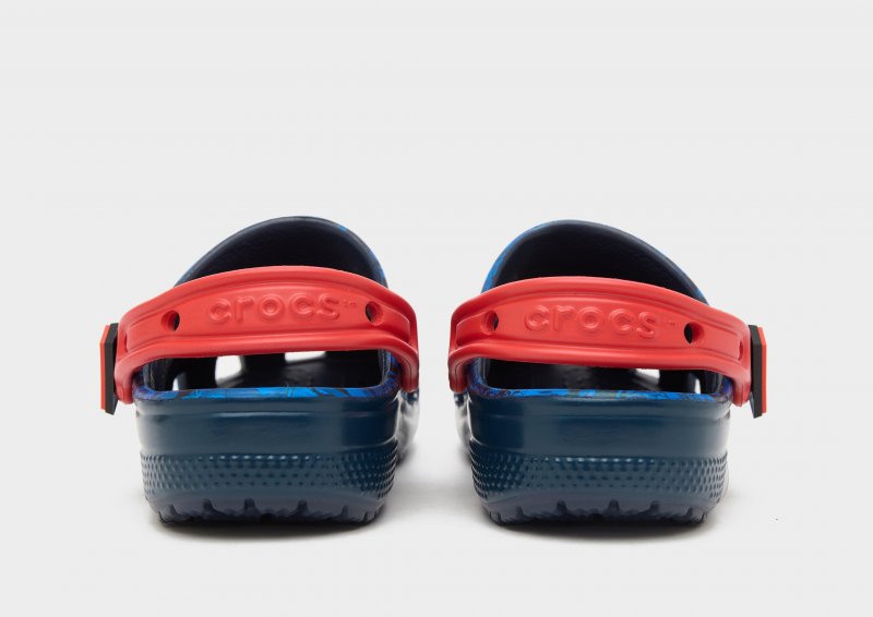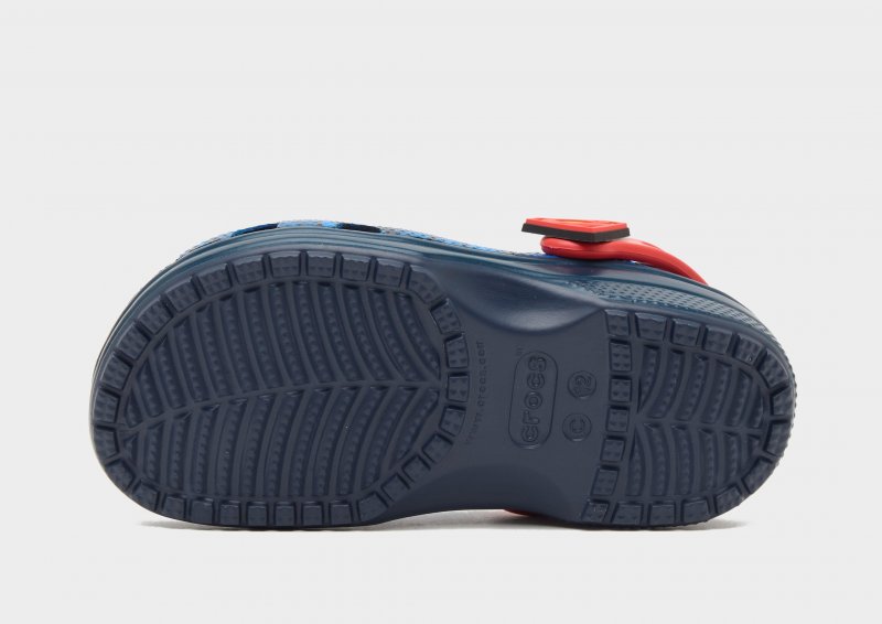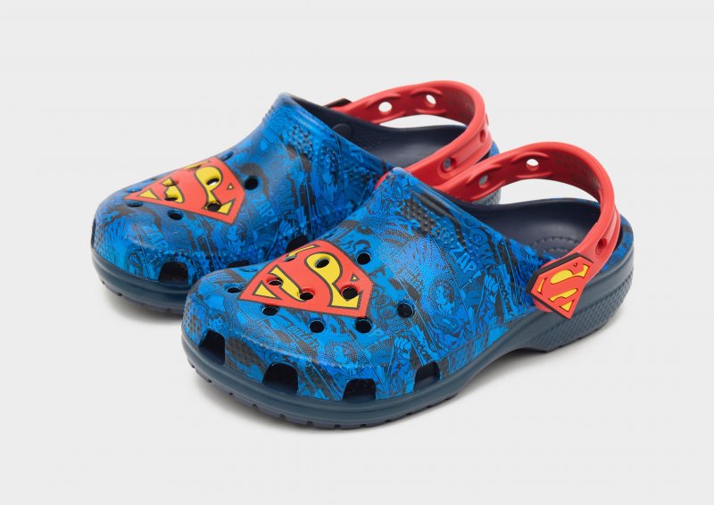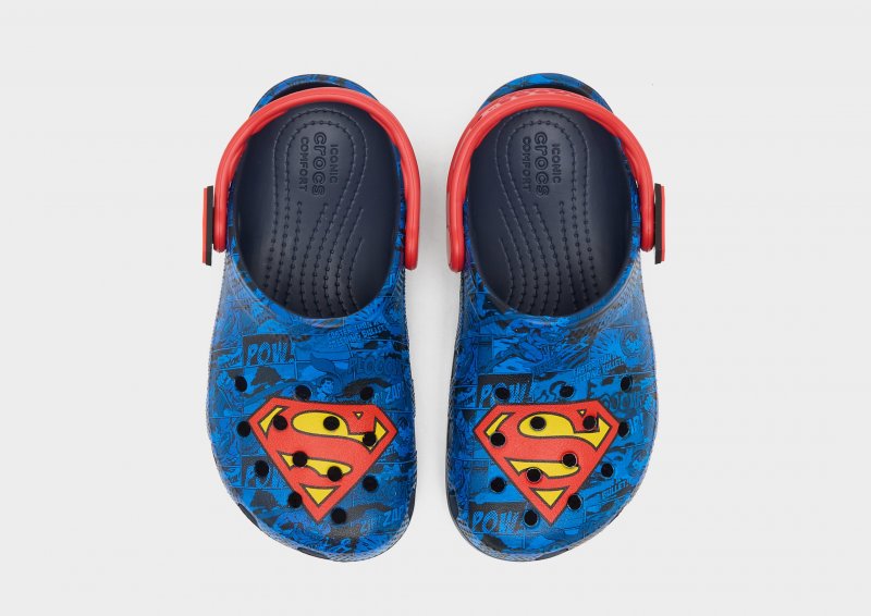 Bring die Lieblings-Superhelden deiner Kids in ihre Rotation mit den Crocs Classic Clog-Sandalen für Kleinkinder. Diese Clogs sind mit einem Superman-Print in Blau und Rot versehen und bestehen aus wasserfreundlichem und hitzebeständigem Croslite-Gewebe. Diese Sandalen verfügen über atmungsaktive Belüftungsöffnungen und einen verstellbaren Fersenriemen für sicheren Halt. Unter den Füßen sorgt die konturierte Zwischensohle mit strukturiertem Fußbett für ein geschmeidiges Laufgefühl, während die Außensohle maximalen Grip bitet. Abgerundet wird das Design durch das Superman-Logo auf dem Obermaterial und an den Seiten. Bitte beachte: Crocs fallen weit aus. Wenn du schmale Füße hast, empfehlen wir dir, eine Nummer kleiner zu wählen. Bei Crocs ist die US-Größe auf der Sohle eingeprägt.