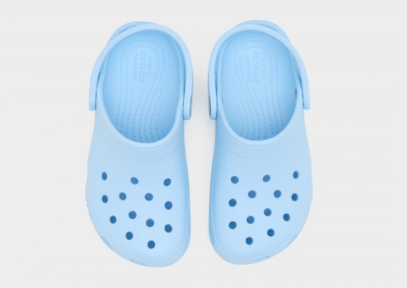 Die klassischen Kinder-Clogs von Crocs sorgen für Komfort. Die Clogs in Calcite Blue sind aus weichem Croslite-Schaum gefertigt und bieten so lange Haltbarkeit. Der drehbare Fersenriemen sorgt für individuelle Passform und atmungsaktive Öffnungen für Jibbitz-Einsätze. Das strukturierte Profil sorgt für Halt und ist mit dem klassischen Crocs-Logo versehen. | Hinweis: Crocs fallen weit aus. Bei schmalen Füßen empfehlen wir eine kleinere Größe. Die US-Größe ist auf der Sohle eingeprägt.