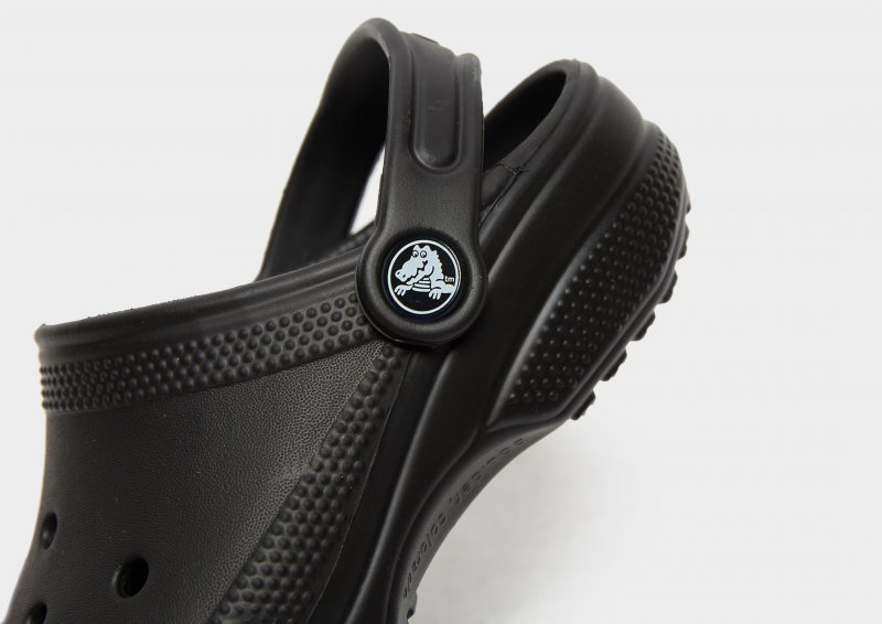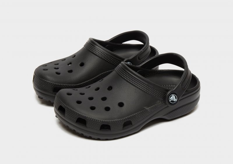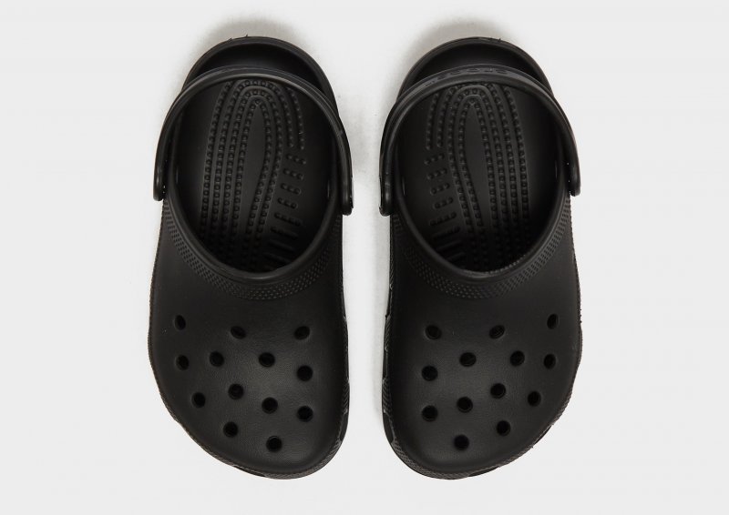 Mach deine Kleinen bereit für den Sommer mit diesen Classic Clogs für Kinder von Crocs. Diese Sandalen in schwarzer Farbe haben ein strapazierfähiges, wasserabweisendes Synthetik-Obermaterial mit Perforationen am Vorderfuß für ein atmungsaktives Tragegefühl. Sie sitzen auf einem konturierten Croslite-Fußbett für weiche Dämpfung unter den Füßen und verfügt über einen verstellbaren Fersenriemen für einen sicheren Sitz. Mit einer robusten Gummi-Außensohle für griffige Traktion sind diese Clogs mit dem charakteristischen Crocs-Branding versehen.