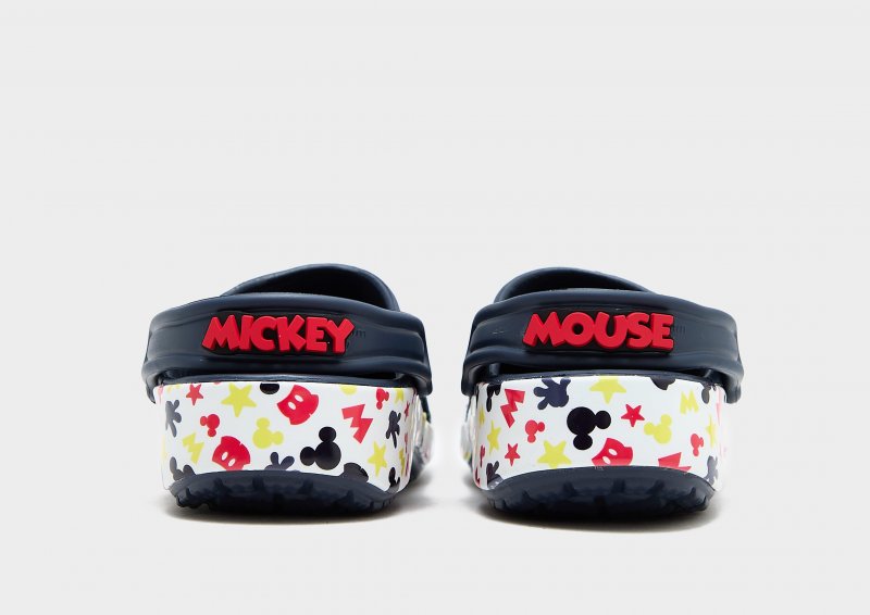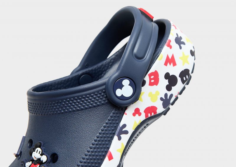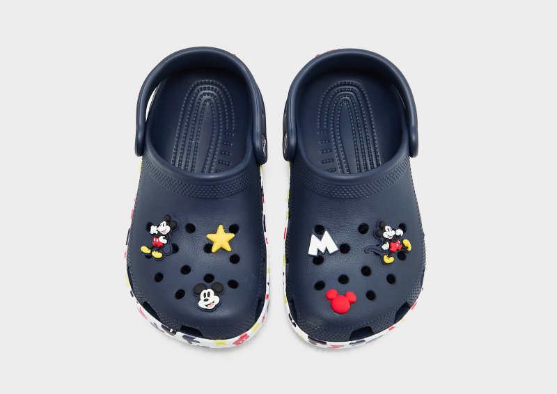 Bring die Lieblings-Disney-Figuren deiner Kids in ihren Look mit den Classic Kleinkinder-Clogs von Crocs. Diese Clogs im Design von Mickey Mouse & Friends sind in der Farbe Navy gehalten und mit einem von Mickey Mouse inspirierten Motiv auf der Sohle versehen. Sie bestehen aus wasserfreundlichem, flexiblem Croslite-Gewebe, das schnell trocknet. Außerdem bieten sie 360-Grad-Komfort und eine strukturierte Außensohle für sicheren Grip, während ein Mickey Mouse Pivot-Fersenriemen für festen Halt sorgt. Die exklusiven Jibbitz-Anhänger können an der Oberseite platziert werden, um den Look zu individualisieren. Bitte beachte: Crocs fallen weit aus. Wenn du schmale Füße hast, empfehlen wir dir, eine Nummer kleiner zu wählen. Bei Crocs ist die US-Größe auf der Sohle eingeprägt.