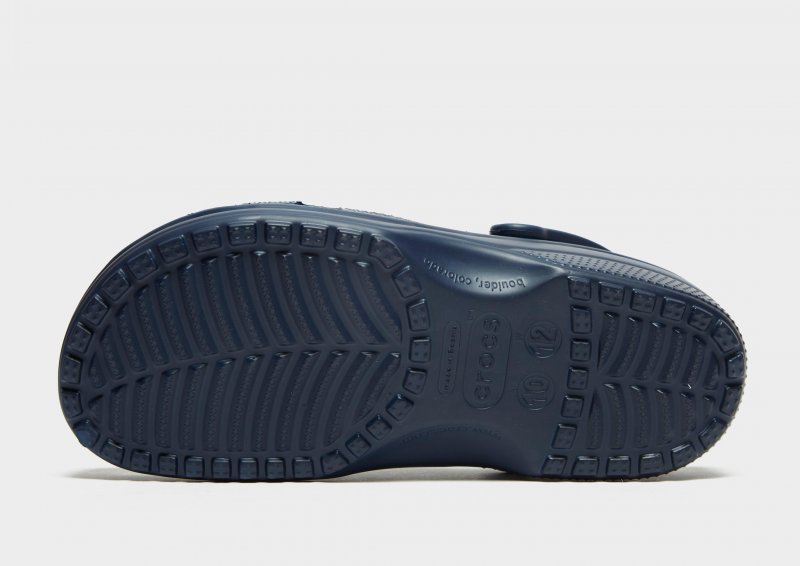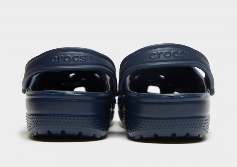Diese klassischen Herren-Slip-On von Crocs in Navy verfügt über eine klobige Zwischensohle und ein leichtes, atmungsaktives Obermaterial mit Perforationen, darunter ein stützender Knöchelriemen und ein pickeliges Fußbett sowie ein Crocs-Logo an den Seiten.
