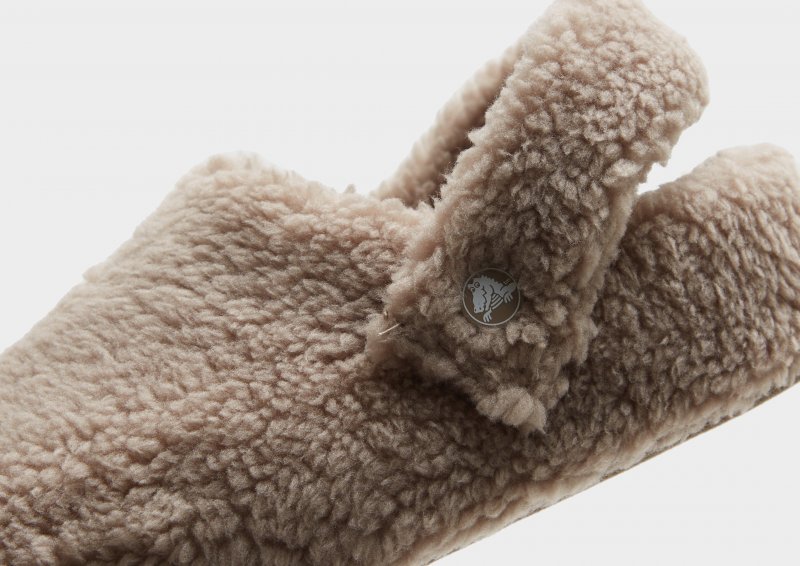 Upgrade deinen Chillout-Look mit den Cozzzy Herren-Slippern von Crocs. Diese Hausschuhe in der Farbe Mushroom haben ein superweiches Fleece-Obermaterial und bieten ein kuscheliges Tragegefühl. Sie verfügen über ein gefüttertes Fußbett für maximalen Komfort und eine weiche Sohle unter den Füßen für leichte Dämpfung. Außerdem sorgt ein schwenkbarer Fersenriemen für eine individuelle Passform, während das klassische Crocs-Logo dem Design einen runden Abschluss verleiht. Bitte beachte: Crocs fallen weit aus. Wenn du schmale Füße hast, empfehlen wir dir, eine Nummer kleiner zu wählen. Bei Crocs ist die US-Größe auf der Sohle eingeprägt.