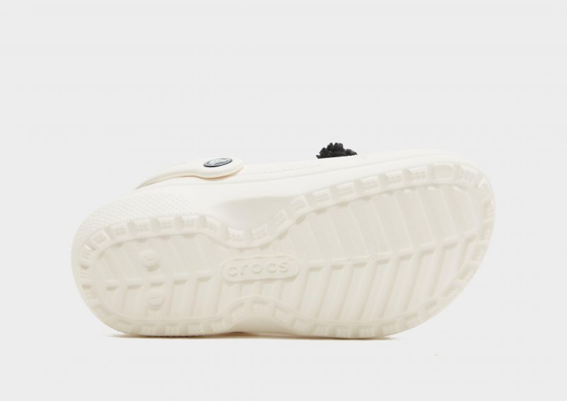 Bring hochwertigen Komfort in den Look deiner Kids mit diesen Lined Clog Kleinkinder-Sandalen von Crocs. Die weißen Classic Clogs bestehen aus synthetischem Croslite-Schaumstoff und sorgen für ein leichtes, bequemes Tragegefühl. Sie verfügen über ein flauschiges Futter und eine strukturierte Sohle für Polsterung und wichtigen Halt. Abgerundet wird das Design durch ein farblich abgestimmtes Crocs-Logo und Panda-Motiven. Bitte beachte: Crocs fallen weit aus. Wenn du schmale Füße hast, empfehlen wir dir eine Nummer kleiner zu wählen. Bei Crocs ist US-Größe auf der Sohle eingeprägt.