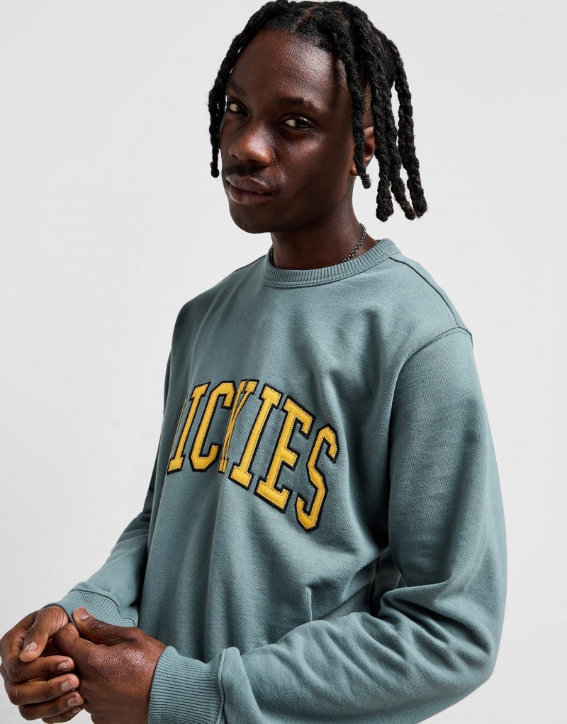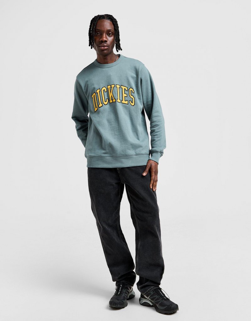 Bring ein neues Highlight in deinen Look mit dem Aitkin Large Logo Crew Herren-Sweatshirt von Dickies. Dieses Relaxed-Fit Oberteil in der Farbe Stormy Weather besteht aus weicher, dick geschnittener Baumwolle und bietet absoluten Komfort. Es verfügt über einen Rundhalsausschnitt und lange Ärmel für einen zeitlosen Look, während dehnbare, gerippte Bündchen die Passform optimieren. Abgerundet durch ein auffälliges, kontrastierendes Dickies-Logo auf der Brust. Waschmaschinengeeignet. Unser Model ist 1,83 m groß, hat einen Brustumfang von 89 cm und trägt Größe M.