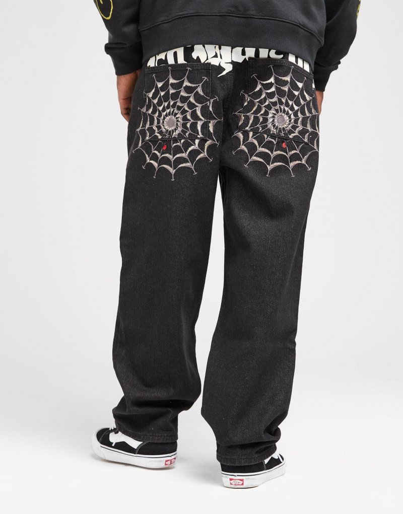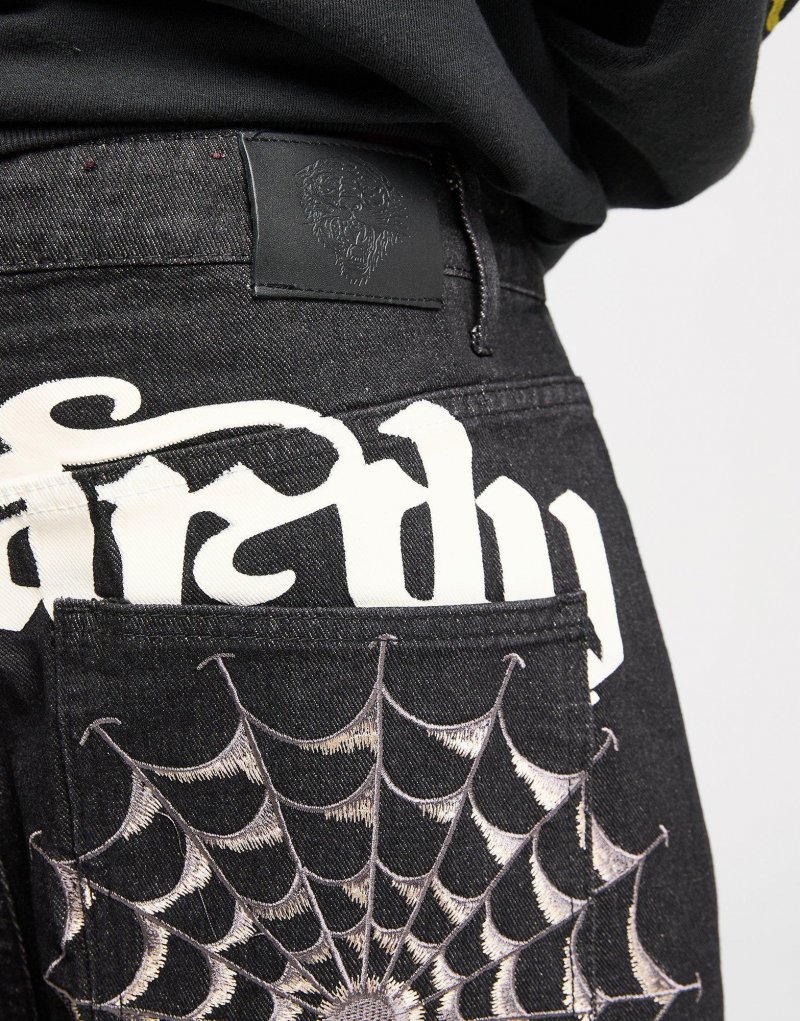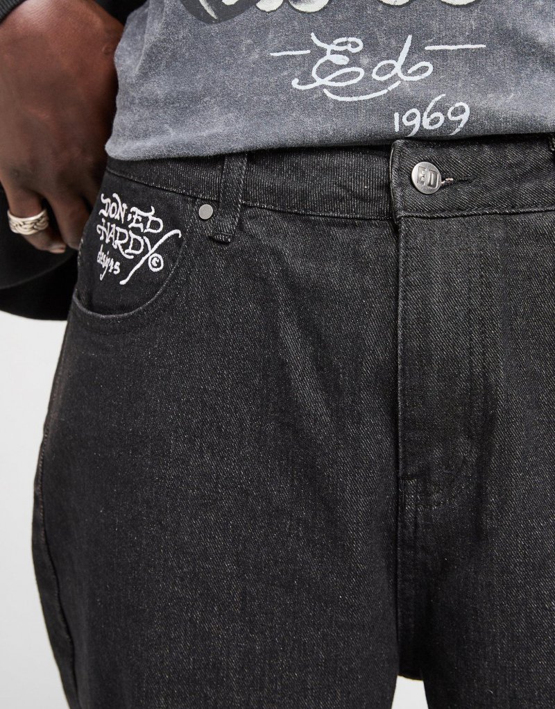Bring deinen Freizeit-Look auf ein neues Level mit der Black Widow Herren-Jeans von Ed Hardy. Diese Relaxed-Fit Hose in Schwarz ist aus weichem, strapazierfähigem Baumwollgewebe gefertigt und sorgt für absoluten Komfort. Sie verfügt über einen mittelhohen Bund mit Knopfverschluss und Gürtelschlaufen für einen sicheren Halt, während das klassische 5-Taschen-Design Platz zum Verstauen deiner Utensilien bietet. Abgerundet wird das Design durch gewebte Motive und das Logo von Ed Hardy auf der Rückseite. Waschmaschinengeeignet.Unser Model ist 1,85 m groß und trägt Größe M.