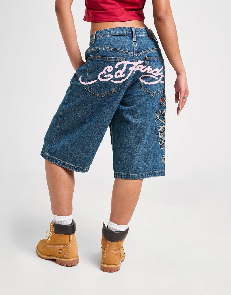 Mit den Ed Hardy Dragon Jorts bringst du ein neues Highlight in deine Garderobe. Diese Loose-Fit Shorts in der Farbe Blus Wash reichen bis unter die Knie und sind aus hochwertigem Denim-Stoff gefertigt. Sie verfügen über einen Hosenschlitz mit Knopf- und Reißverschluss sowie ein klassisches 5-Taschen-Design für deine Utensilien. Abgerundet wird das Design durch einen Markenaufnäher von Ed Hardy auf der Rückseite und aufgestickte Elemente, darunter ein Drache am Hosenbein und Blumen an den Taschen. Waschmaschinengeeignet. Unser Model trägt Größe S.