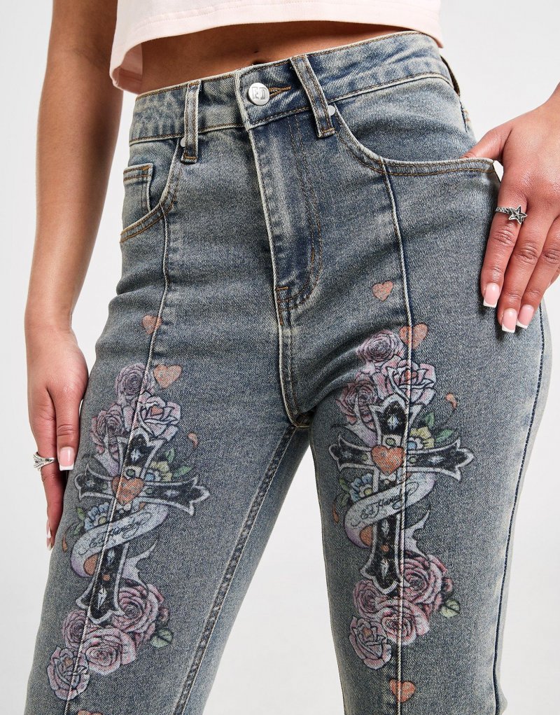 Hol dir ein Denim-Upgrade mit der Ed Hardy Floral Cross Flare Jeans für Damen. Diese Slim-Fit Hose in der Farbe Blue Wash besteht aus schickem Denim-Stoff und bietet maximalen Tragekomfort. Sie verfügt über ausgestellte Hosenbeine und einen klassischen Hosenschlitz mit Knopfleiste. Außerdem verfügt sie über Gürtelschlaufen an der Taille, während das 5-Taschen-Design Platz für deine Utensilien bietet. Abgerundet wird das Ganze durch ein Floraöl-Cross-Motiv am Oberschenkel und das klassische Logo von Ed Hardy. Waschmaschinengeeignet. Unser Model trägt Größe S.