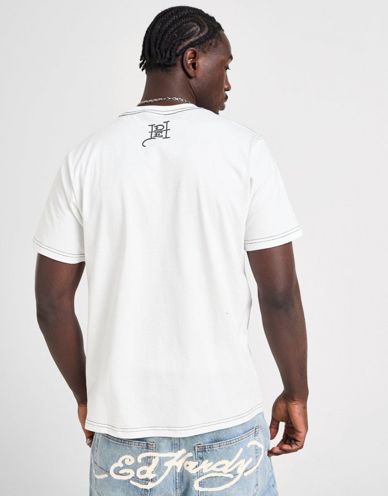 Bring die Y2K-Energie in deinen Look mit dem Ed Hardy Snake Sunset T-Shirt für Herren. Dieses Standard-Fit Oberteil in Weiß besteht aus weicher, leichter Baumwolle und bietet dauerhaften Komfort im Alltag. Es verfügt über einen gerippten Rundhalsausschnitt und kurze Ärmel für ein angenehmes Tragegefühl, während ein auffälliges Markenmotiv von Ed Hardy auf der Vorderseite platziert ist. Waschmaschinengeeignet. Unser Model ist 1,85 m groß, hat einen Brustumfang von 91 cm und trägt Größe M.