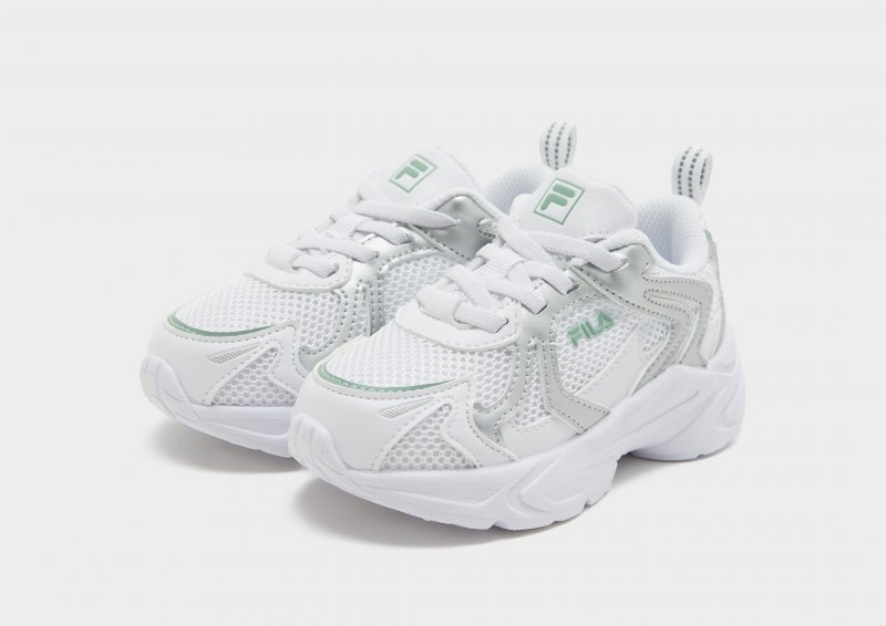Bring den Style deiner Kids auf ein neues Level mit den Fila Heroics Sneakern für Babys. Diese weißen Schuhe sind mit grünen und silbernen Akzenten versehen und besitzen ein luftiges Mesh-Obermaterial mit Synthetik-Overlays für dauerhaften Tragekomfort. Darüber hinaus verfügen sie über elastische Schnürsenkel und einen gepolsterten Kragen für einen sicheren Halt. Unter den Füßen sorgt eine schwammartige Schaumstoff-Zwischensohle für ein reaktionsfreudiges Laufgefühl, während die Gummi-Außensohle maximale Traktion sicherstellt. Abgerundet wird das Design durch das klassische Logo von Fila.