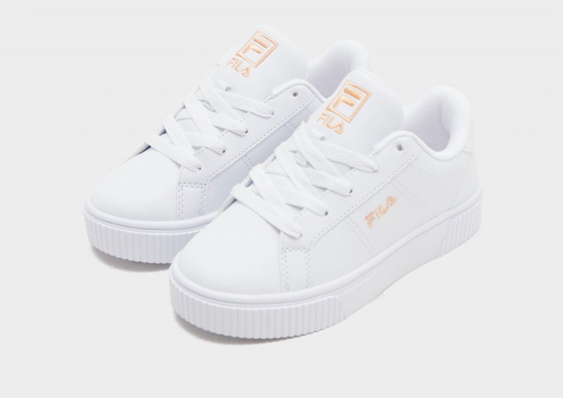 Schnüren Sie Ihr Kind in diesen Panache-Sneakern für Kinder von Fila. In Weiß mit Peach-Cobbler-Details haben diese verkleinerten, JD-exklusiven Sneaker ein glattes und strapazierfähiges Obermaterial aus Synthetik für lange Haltbarkeit. Sie verfügen über einen Schnürverschluss für sicheren Halt und einen gepolsterten Knöchelkragen für zusätzlichen Halt. Die gepolsterte Zwischensohle sorgt für ein reaktionsfreudiges Laufgefühl. Sie sitzen auf einer griffigen Gummilaufsohle und sind mit dem Fila-Branding auf Zunge, Ferse und Seitenwänden versehen.