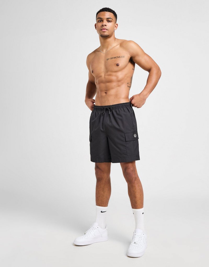 Exklusiv bei JD. Ob am Strand oder im Pool, diese Badge Cargo Badeshorts für Herren von Fred Perry sind der perfekte Begleiter. Diese Badeshorts in Schwarz sind aus schnelltrocknendem Polyestergewebe gefertigt und bieten dauerhaften Tragekomfort. Sie verfügen über einen elastischen Bund mit Kordelzug für einen sicheren Sitz, während Seiten- und Cargotaschen wichtigen Stauraum bieten. Abgerundet durch Fred Perrys ikonisches Lorbeerkranz-Abzeichen auf der Taschenklappe. Maschinenwaschbar. | Unser Model ist 1,85 m groß und trägt Größe M.