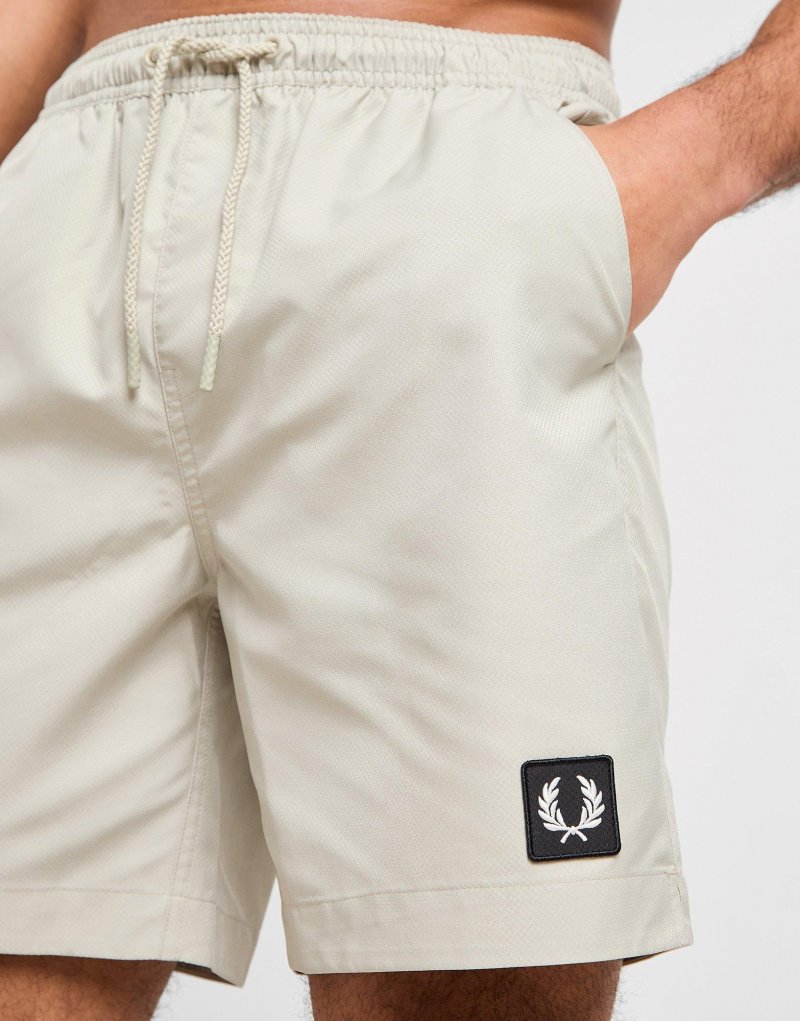 Mit diesen Badge Swim Shorts für Herren von Fred Perry sehen Sie am Pool immer erstklassig aus. Diese JD-exklusiven Shorts in der Farbe Light Oyster sind aus glattem, leichtem Polyester gefertigt und bieten höchsten Tragekomfort. Sie verfügen über einen elastischen Bund mit Kordelzug zur Anpassung der Passform, ein Netzfutter, das sie kühl hält, und Seitentaschen zur Aufbewahrung. Abgerundet durch ein Lorbeerkranz-Badge-Logo auf dem Oberschenkel. Maschinenwaschbar. | Unser Model ist 1,85 m groß und trägt Größe M.